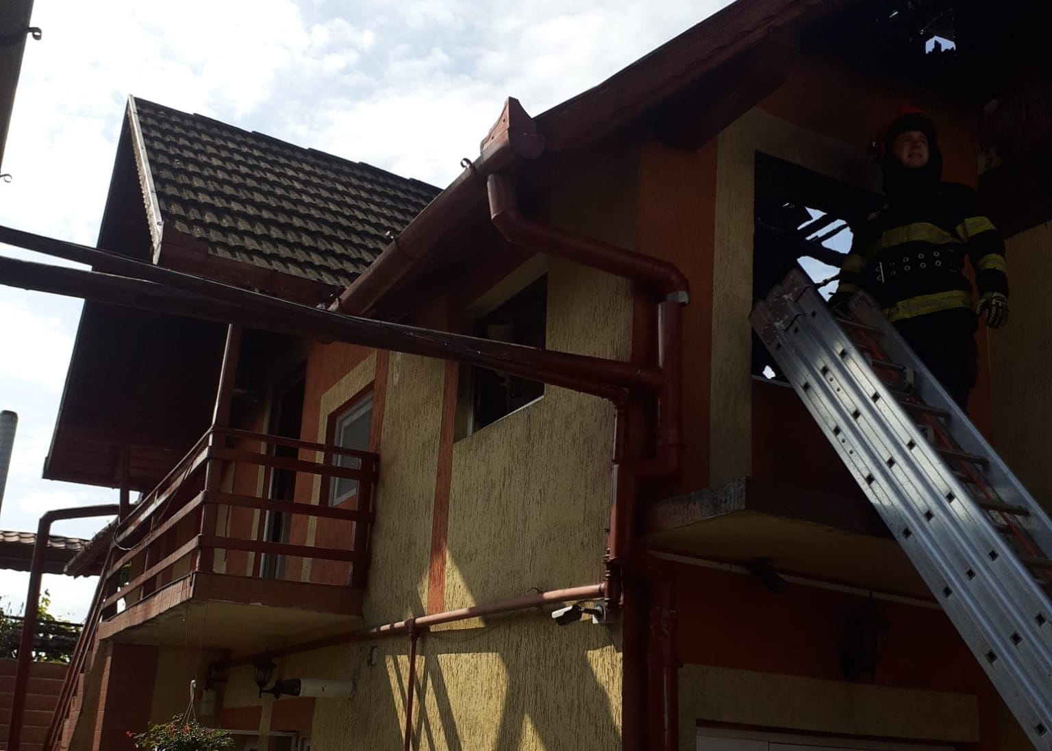 Cluj: Incendiu la o casă din Câmpia Turzii! Flăcările au cuprins mansarda/O femeie a suferit un atac de panică - FOTO