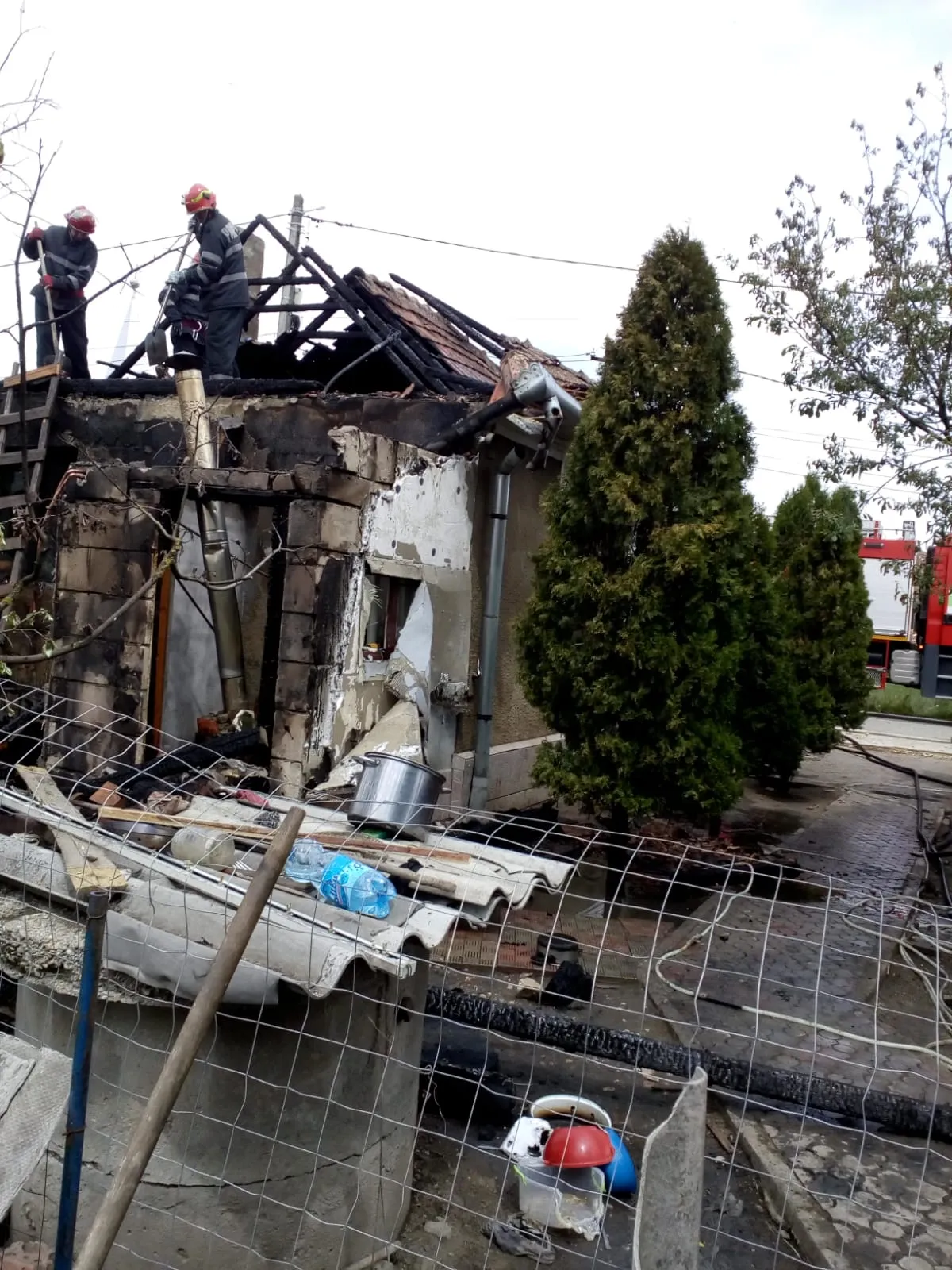 În urma incendiului au fost distruse bucătăria de vară, care avea o suprafață de aproximativ 16 mp, și circa 30 metri pătrați din acoperișul casei de locuit.
