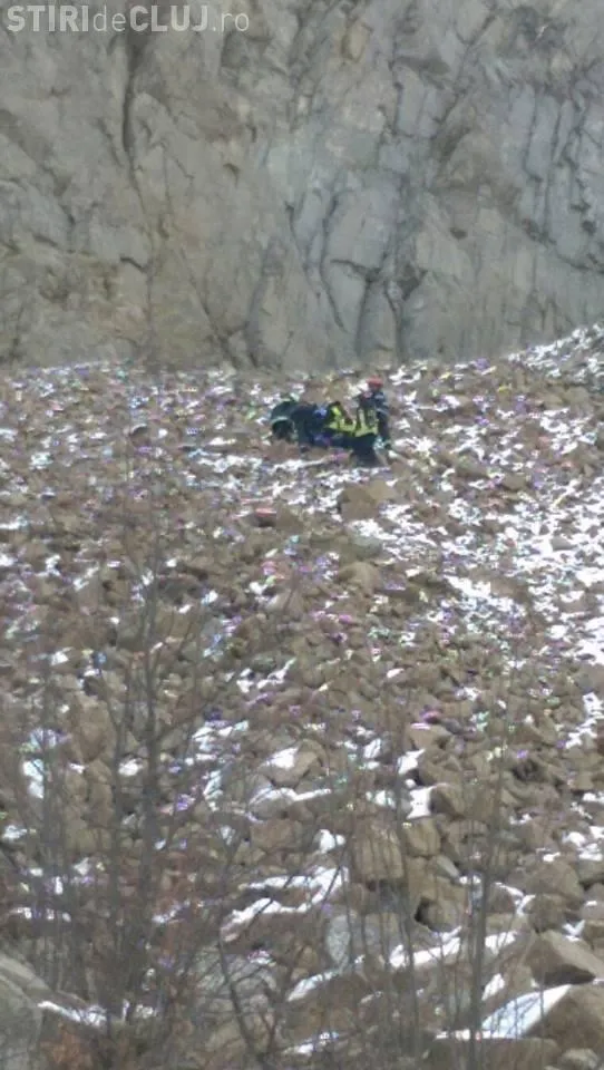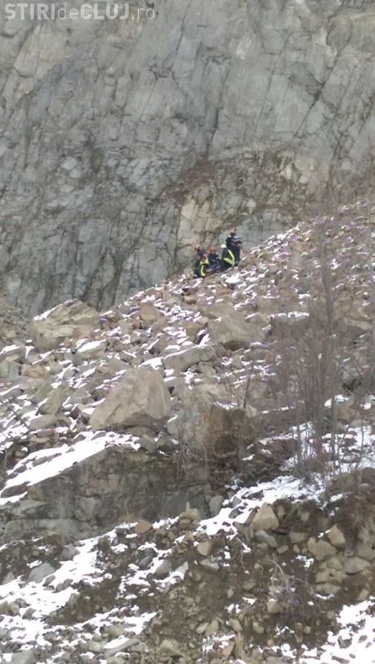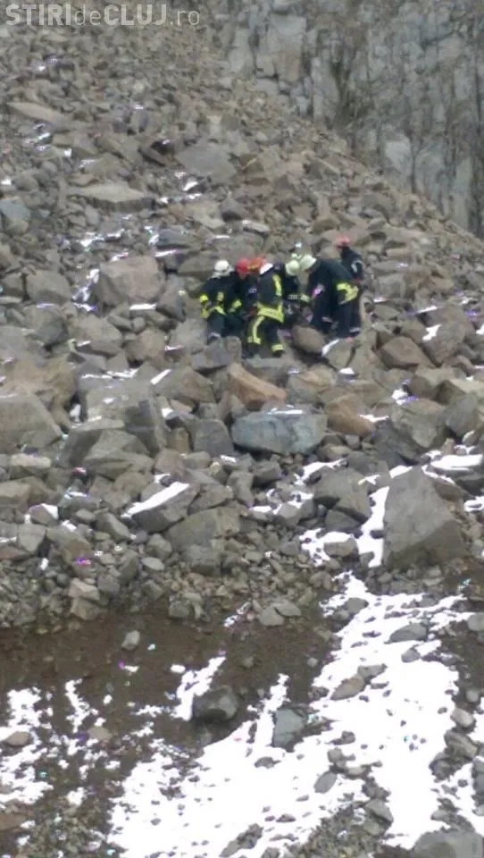 Echipajul Detașamentului de Pompieri Huedin a asigurat accesul în zona incidentului, unde căderile rocilor masive erau frecvente, punând în pericol salvatorii, și au extras persoana decedată.