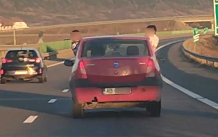 Doi minori au fost filmați în timp ce stau cu jumătate de corp în afara mașinii, în timp ce aceasta circulă cu viteză, pe Autostrada Transilvania.