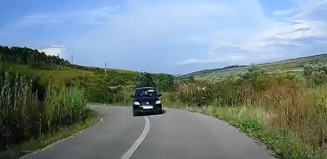 Inconștiența rămâne la cote ridicate în Cluj. Un șofer a fost filmat în timp ce taie o curbă, pe un drum din Cluj, și este aproape de impact cu o altă mașină, ieri, 21 iulie.
