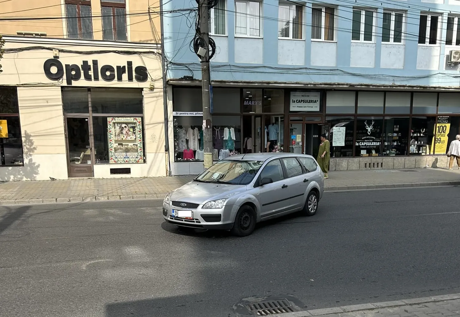 ”Mașină lăsată în mijlocul drumului, în Piata Mihai Viteazu. Șoferul a părăsit locul.