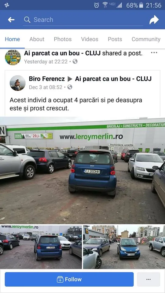 Astazi am vazut din intamplare o poza pe grupul " Ai parcat ... " cu acest Smart ... Ce sa mai cred acum ???”, a relatat Fati A. Alexandru.
