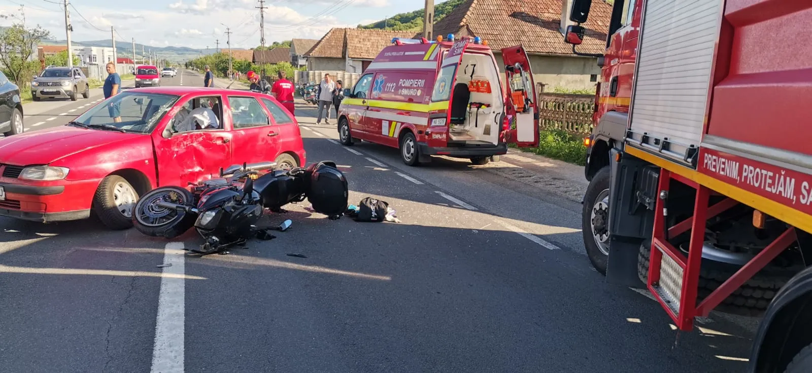 Cluj: Motociclist accidentat lângă Dej, ajutat de doua asistente de la UPU Cluj - FOTO
