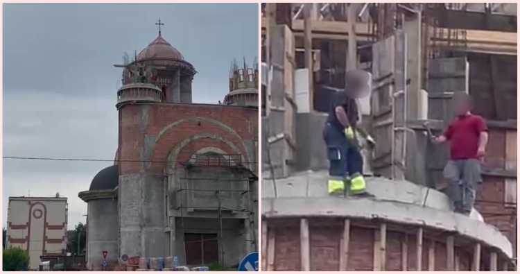 Muncitorii care lucrează la o biserică din cartierul Zorilor, din capătul străzii Observatorului, au fost filmați în timp ce umblau pe acoperiș, fără nicio asigurare.