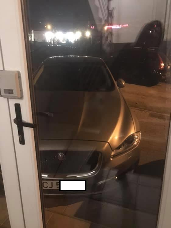 Nimic mai fals! Șoferul unui Jaguar demonstrează contrariul, după ce a parcat chiar la intrare în scara blocului. Probabil ar fi parcat în scară, dar îl incomodau ușile.