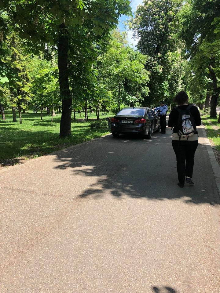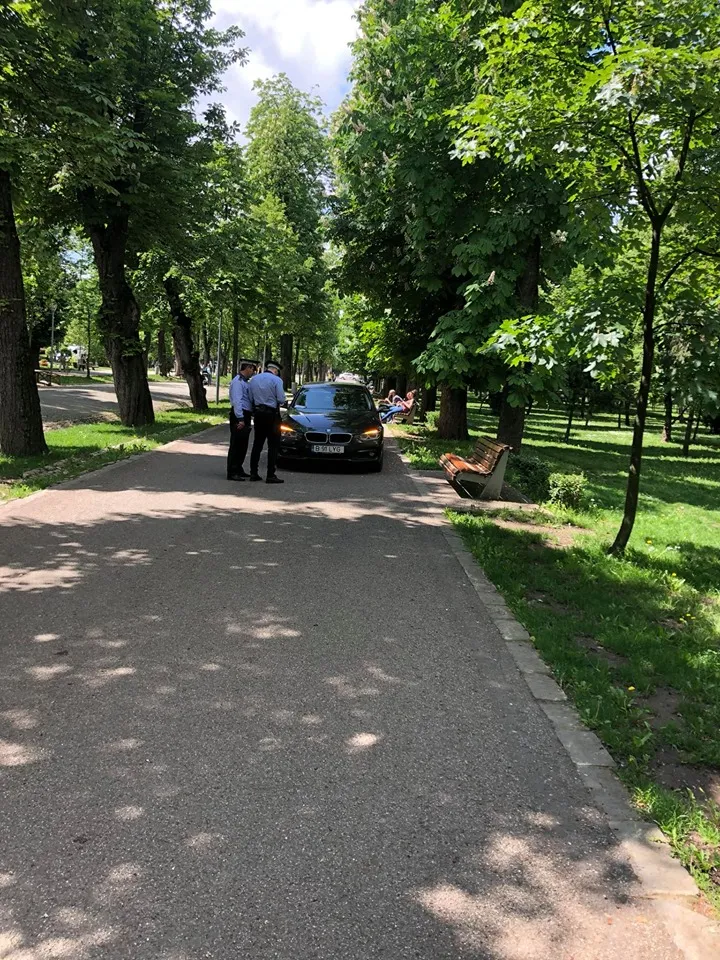 Poliția locală a intervenit rapid și l-a amendat pe șofer, dar ridicarea este mai greu de făcut pe aleile parcului.
