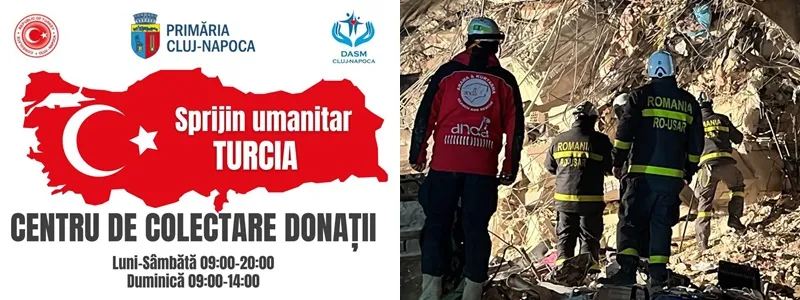 Donațiile sunt destinate persoanelor afectate de cutremurul care a lovit luni, 6 februarie, Turcia. Primarul municipiului Cluj-Napoca, Emil Boc, a anunțat sprijin pentru oamenii afectați de cutremurul din Turcia și că Primăria Cluj-Napoca pune la dispoziție 2 puncte de colectare a donațiilor.
