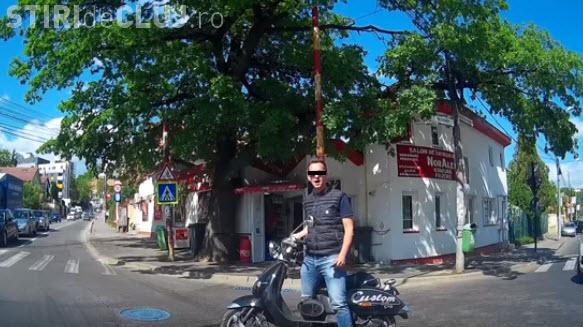 Cluj-Napoca: Cu telefonul în mană, pe scuter, nu dă prioritate în sensul giratoriu și face și SCANDAL- VIDEO