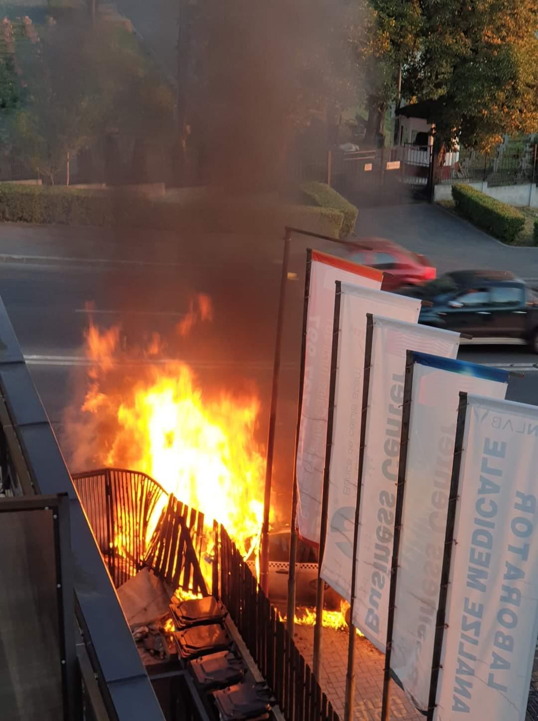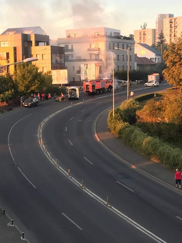 CLUJ-NAPOCA - O mașină a luat foc, după ce s-a izbit de o țeavă de gaz pe Calea Turzii. Șoferul a făcut PRĂPĂD - VIDEO