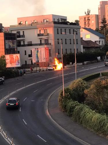 Pompierii din cadrul Detașamentului 1 Cluj-Napoca au intervenit în dimineața de marți, 26 iulie, pentru a stinge flăcările care au cuprins un autoturism după ce acesta a ieșit în afara părții carosabile și a avariat branșamentele de alimentare cu gaz și electricitate a unui imobil situat pe Calea Turzii din municipiul Cluj-Napoca.
