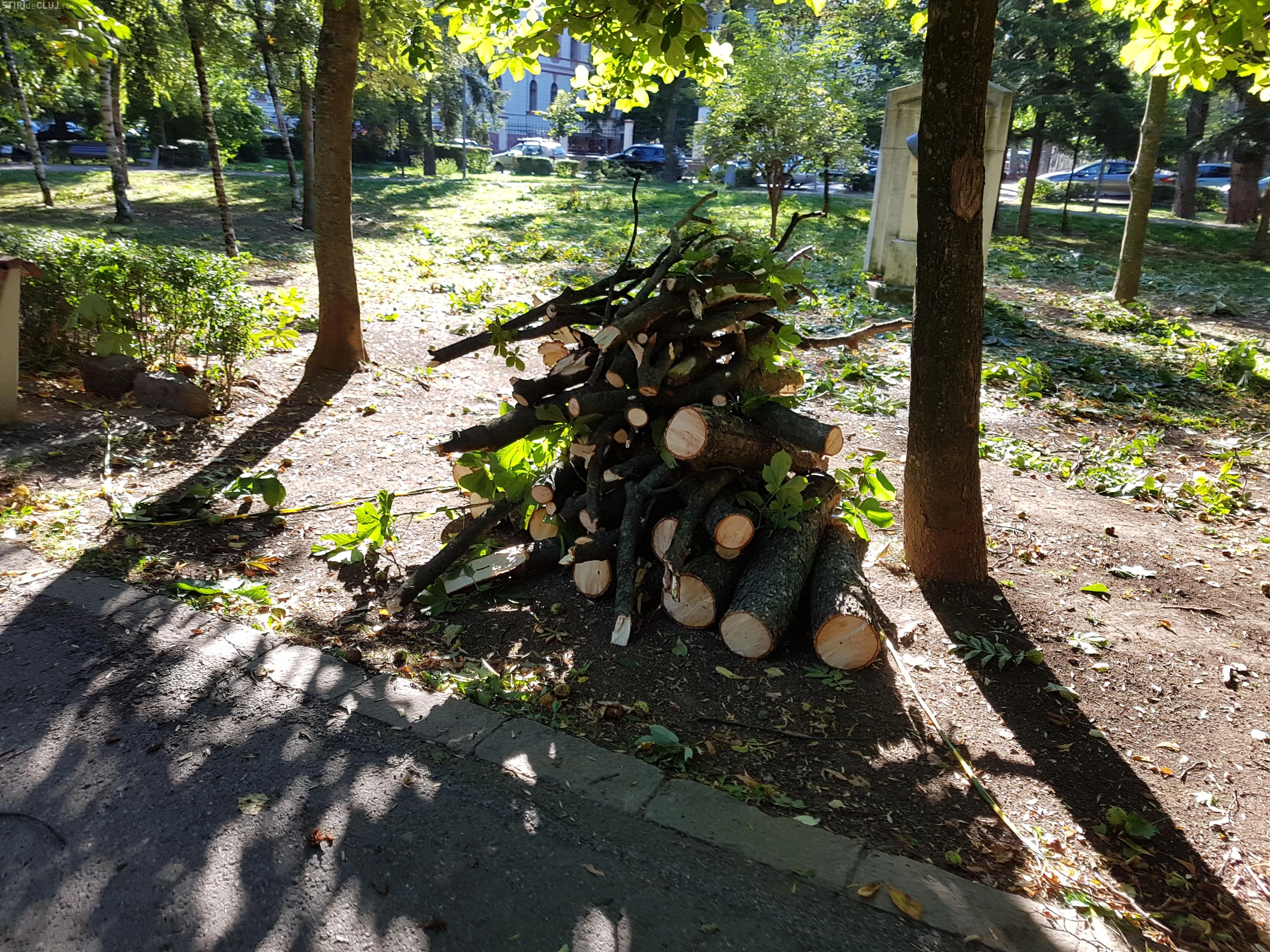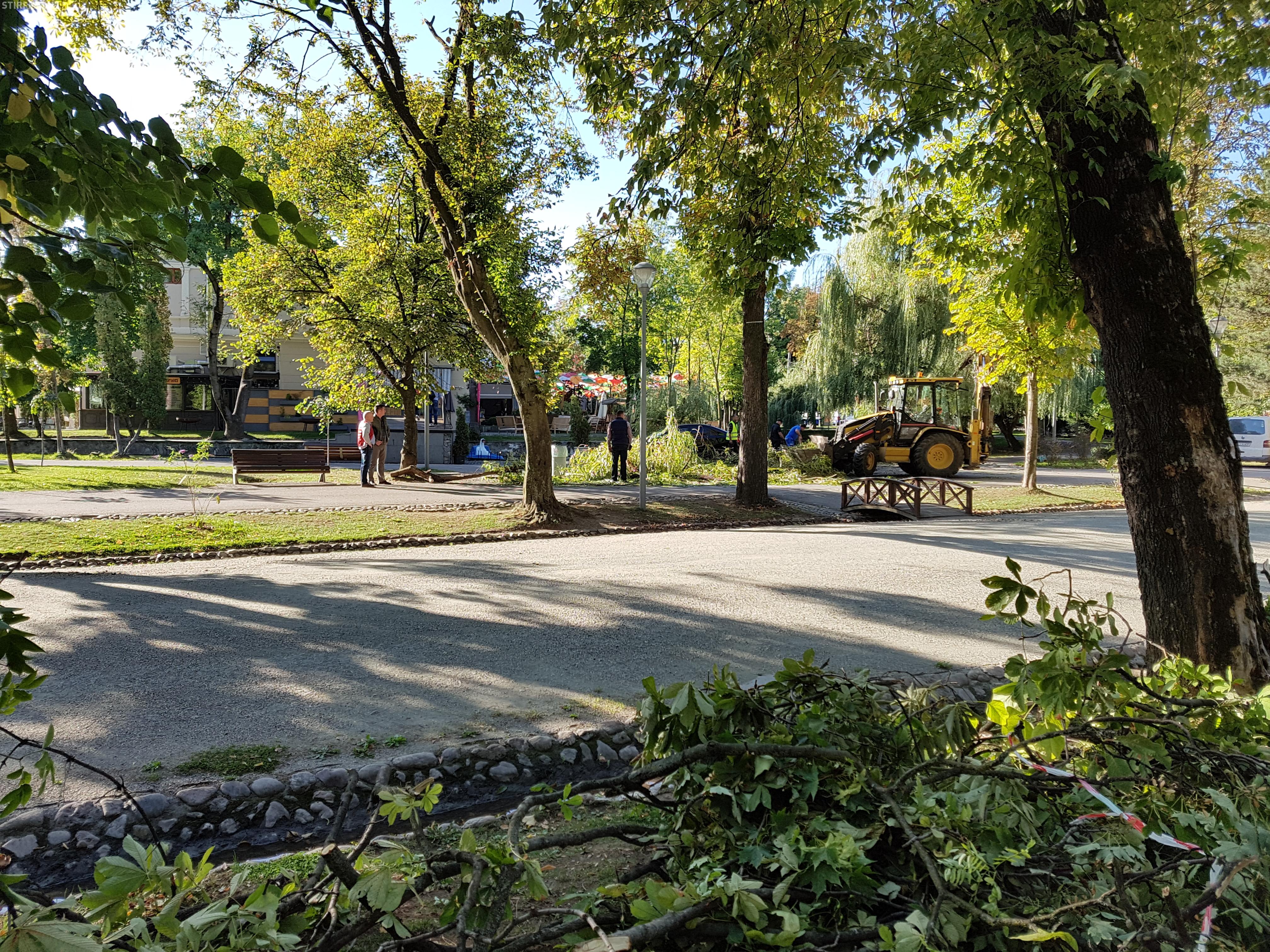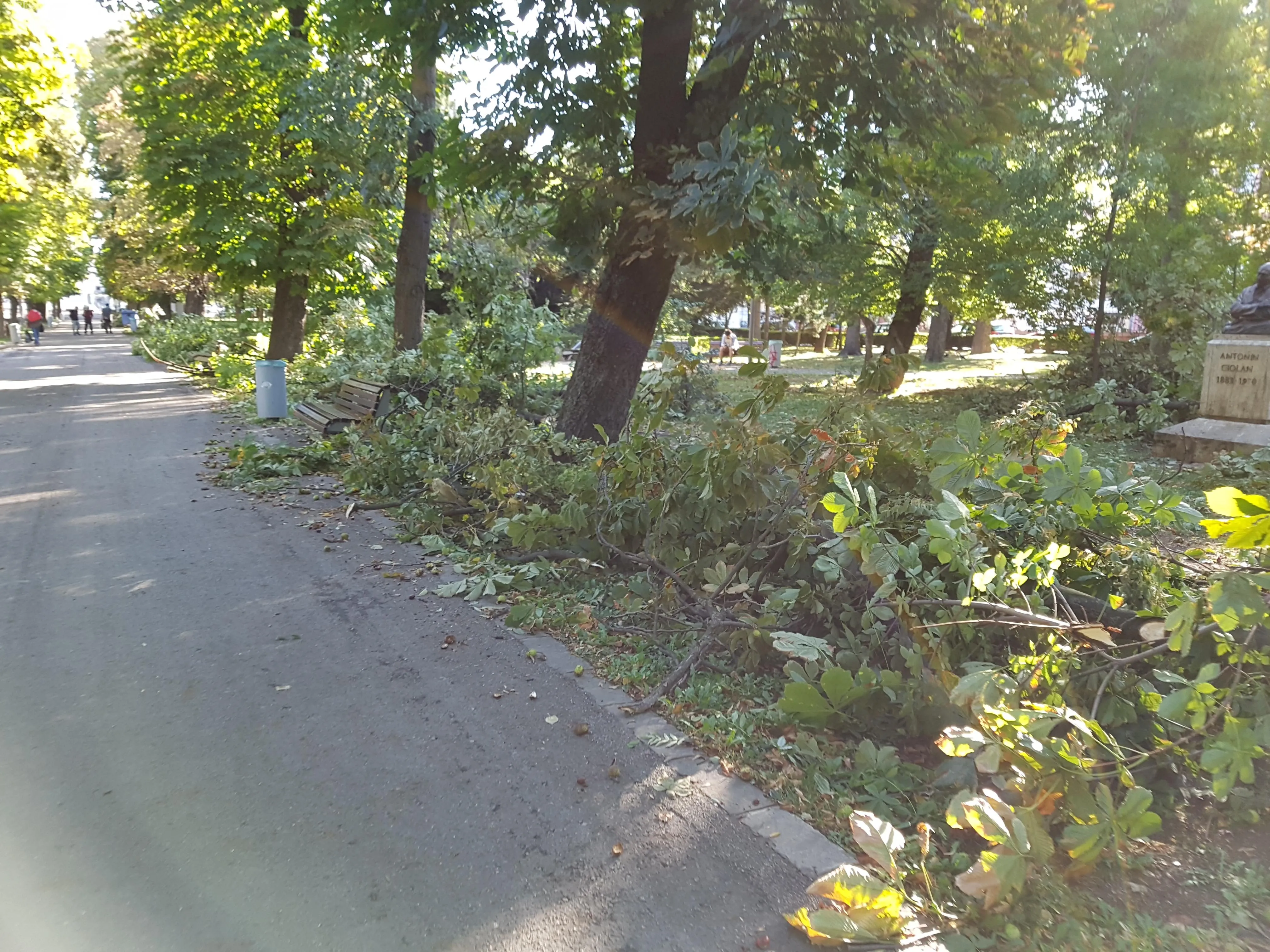 Muncitorii de la RADP erau luni dimineața în Parcul Central pentru a îndepărta copacii căzuți. La fața locului s-a deplasat și directorul regiei, Ion Pantelimon, care coordona operațiunile.