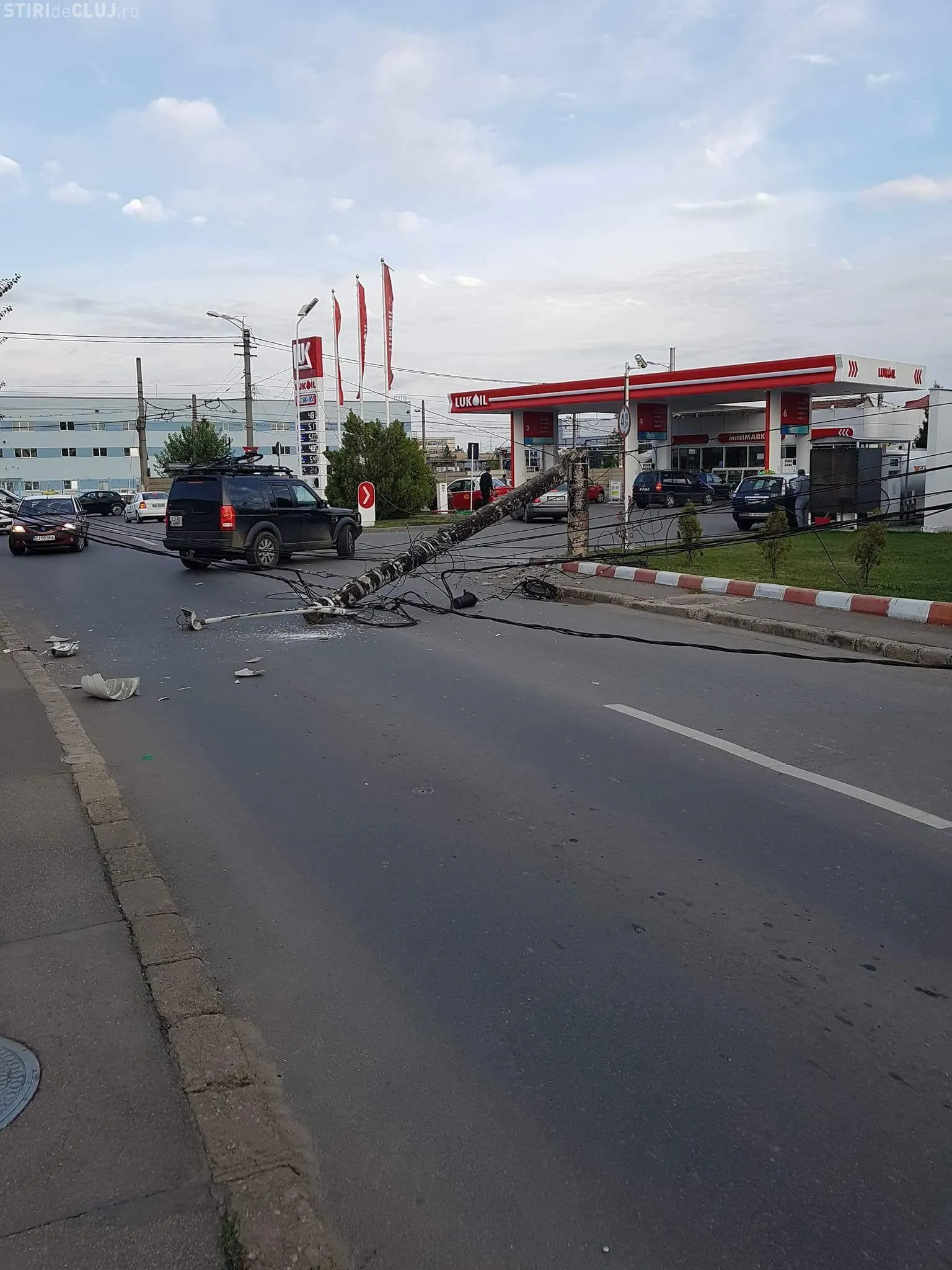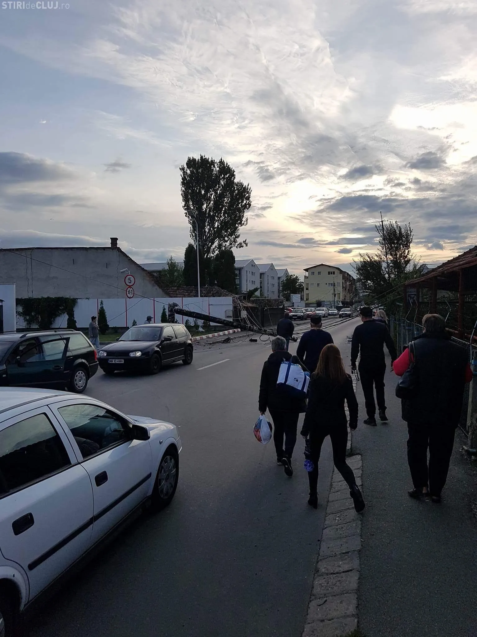 Cluj-Napoca: Pe strada Fabricii colț cu Sobarilor au căzut trei stâlpi în plin trafic - FOTO