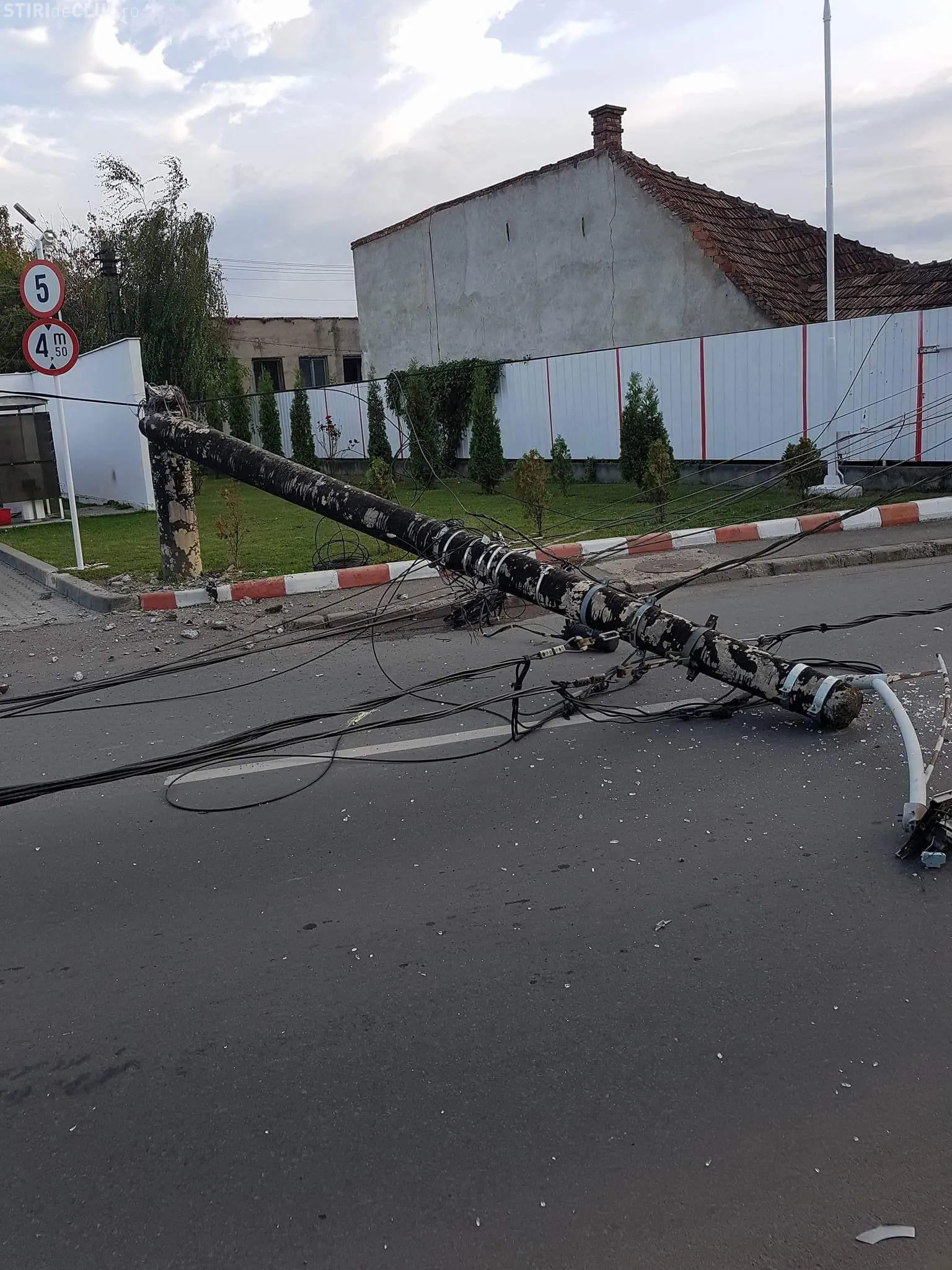Trei stâlpi de electricitate au căzut, vineri seara, în jurul orei 18.40, pe strada Fabricii colț cu Sobarilor.