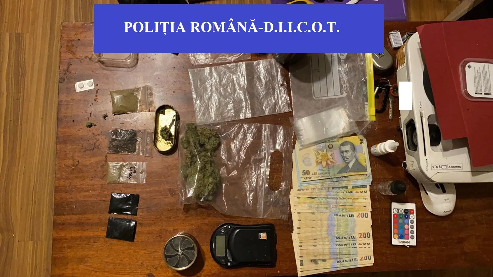 Aproape 1 kilogram de cannabis, peste 16.000 de lei și alte bunuri au fost ridicate, joi, de polițiștii clujeni, în urma a 3 percheziții efectuate la 2 bărbați bănuiți de trafic de droguri.