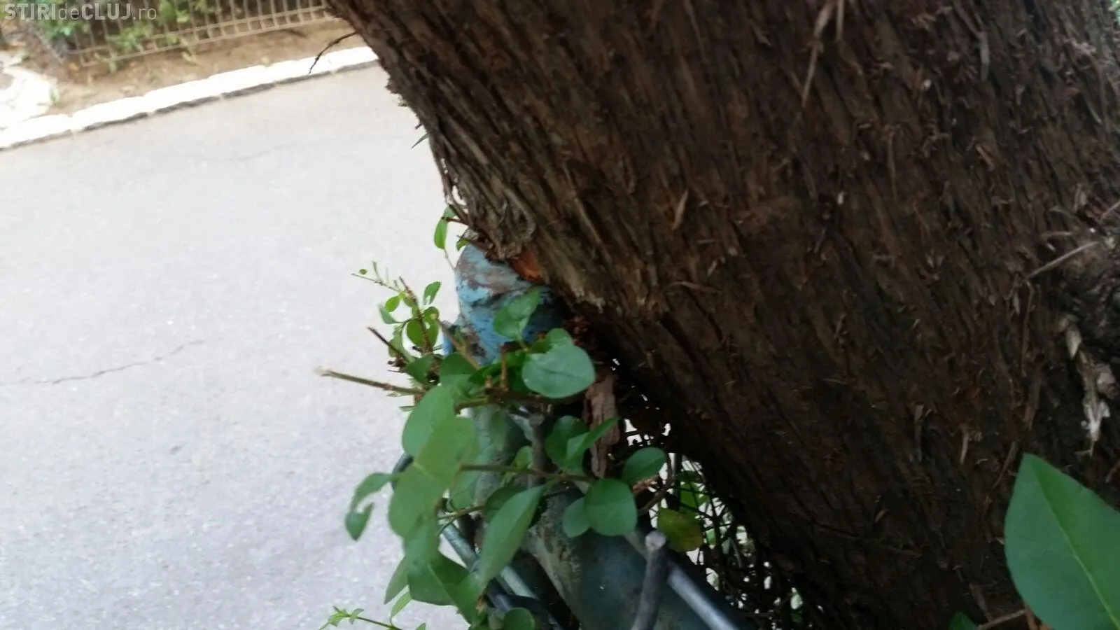 Un arbore din specia Thuya riscă să cadă în orice moment în capul clujenilor care locuiesc pe Aleea Bizușa, dar nimeni nu vrea să ia măsuri. Dorinta de a avea cat mai multi copaci in oras a devenit in Cluj-Napoca aproape o obsesie, autoritatile refuzand sa taie inclusiv copacii care in mod evident prezinta un pericol pentru oameni.