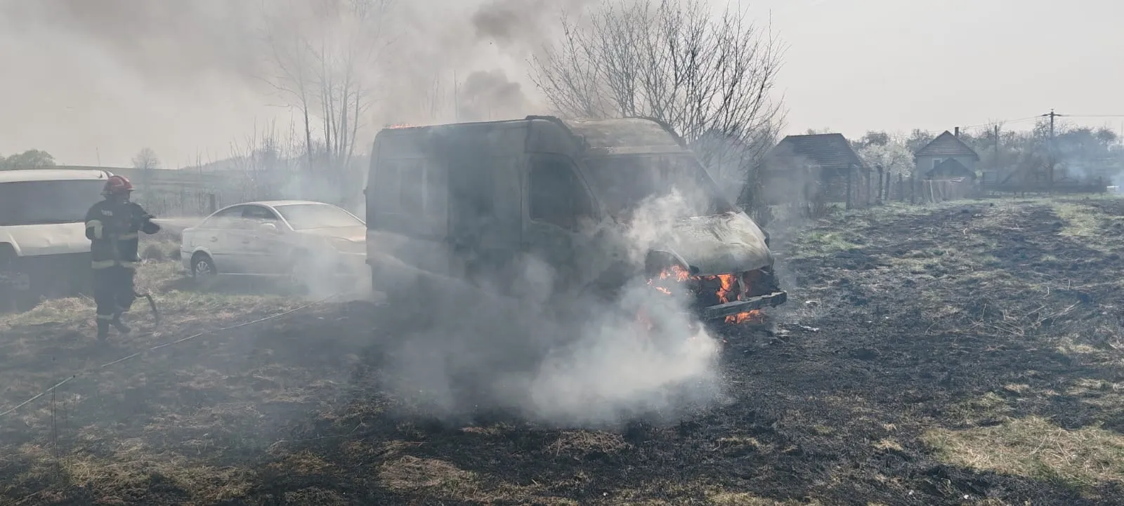 Cluj: O autoutilitară a luat foc în Bologa. Intervin pompierii clujeni - FOTO