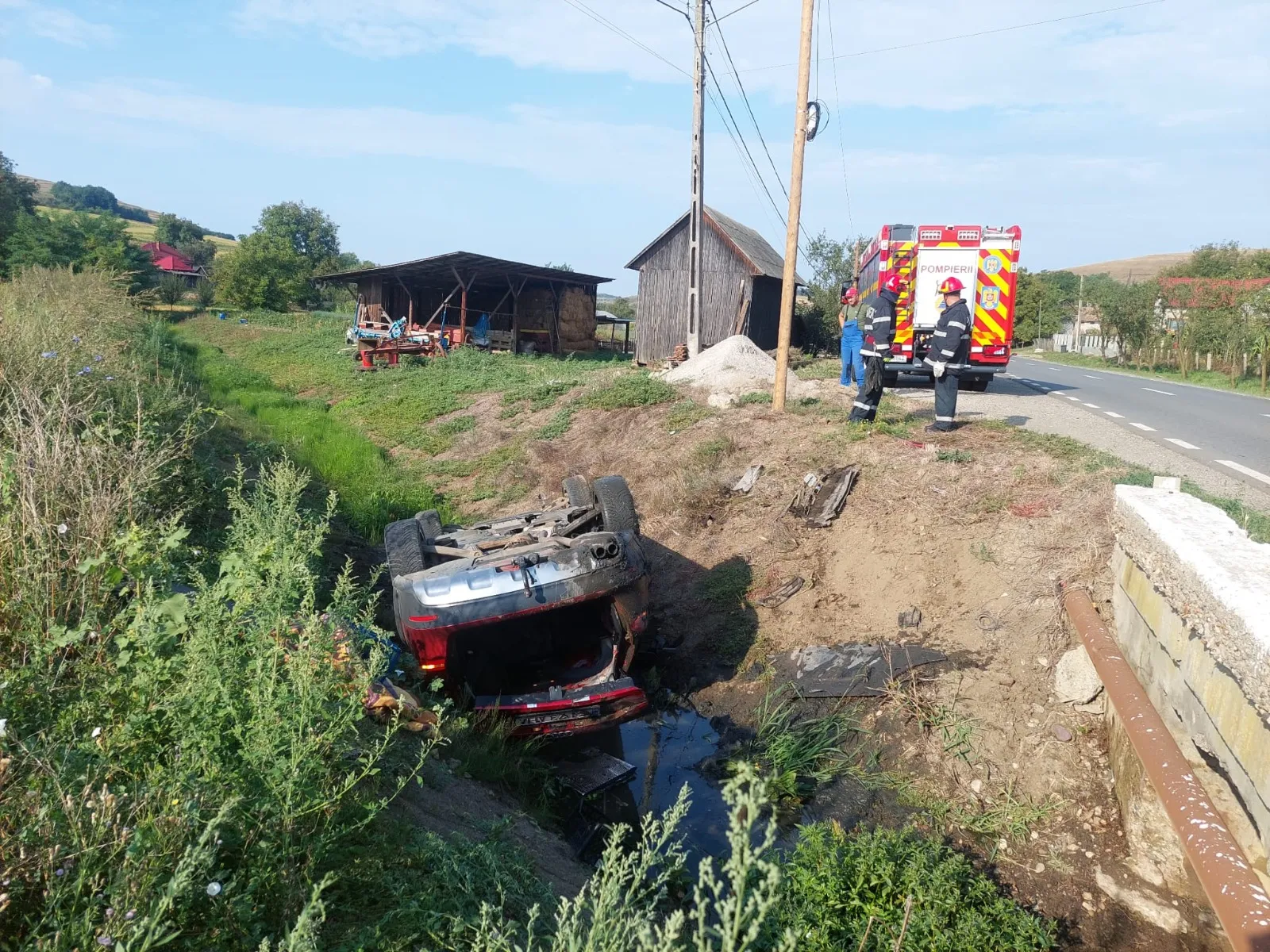 Un accident rutier a avut loc în comuna Mociu, în satul Ghirișul Român, atunci când o mașină s-a răsturnat într-un șanț.