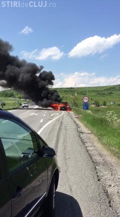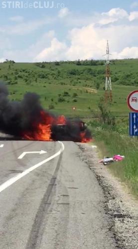Cluj: O mașină a ars ca o torță - VIDEO