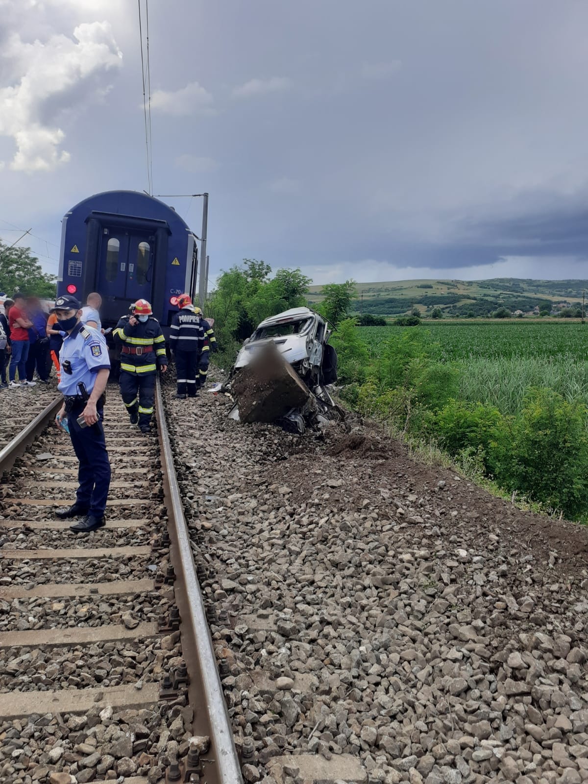 Cluj: O mașină a fost lovită de tren în Gherla. Șoferul a murit pe loc - FOTO