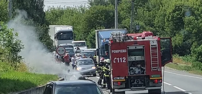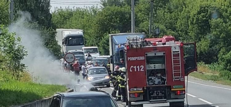 Cluj: O mașină a luat foc la ieșirea din Gilău. Trei persoane au fost transportate la spital - FOTO