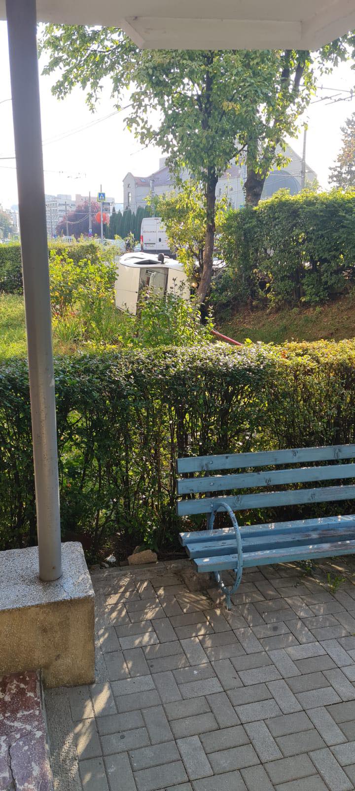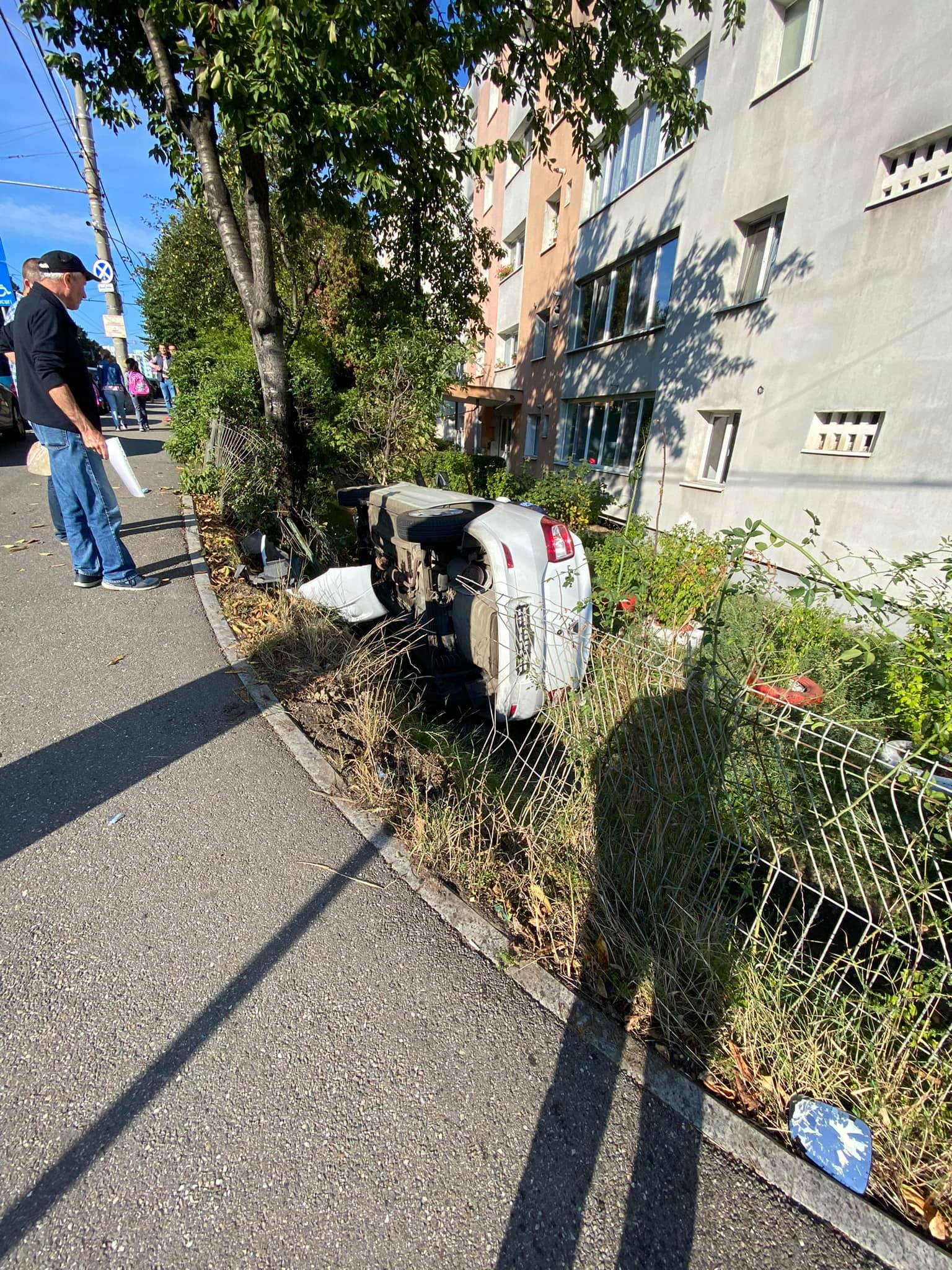 Cluj: O mașină s-a răsturnat în șanț, pe strada Primăverii - FOTO
