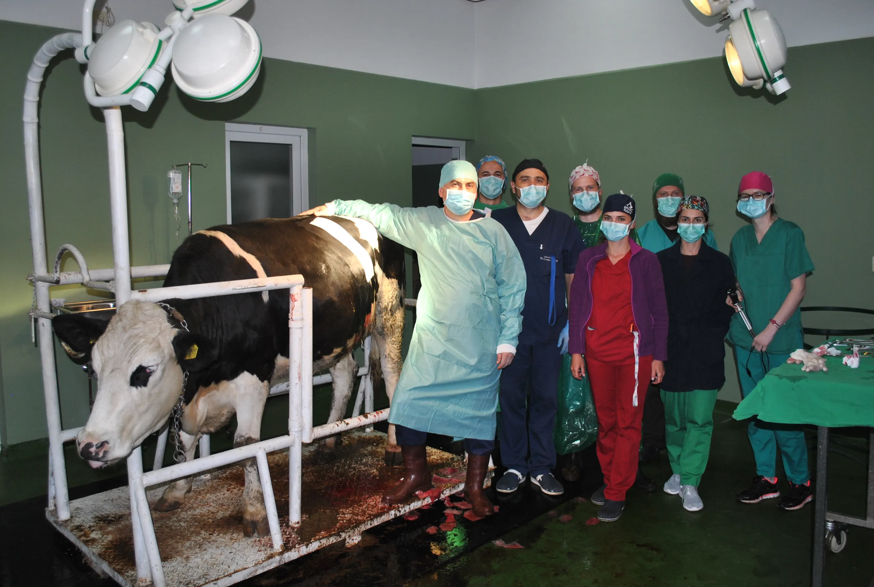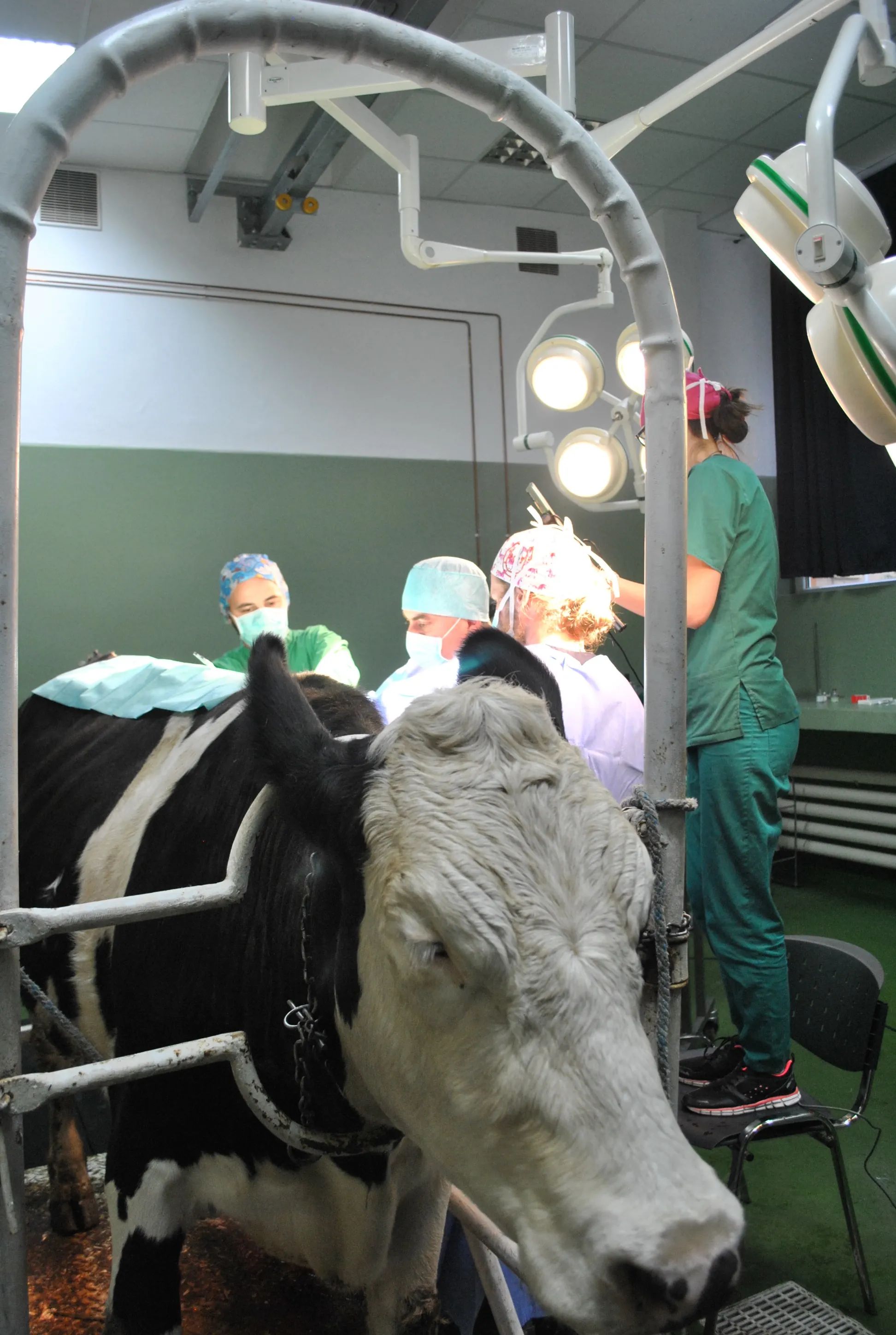 Operația – rumenotomie - a fost făcută unei vaci în vârstă de patru ani, din rasa Holstein, care a fost diagnosticată cu reticulită traumatică, iar intervenția s-a încheiat cu bine după aproximativ două ore.