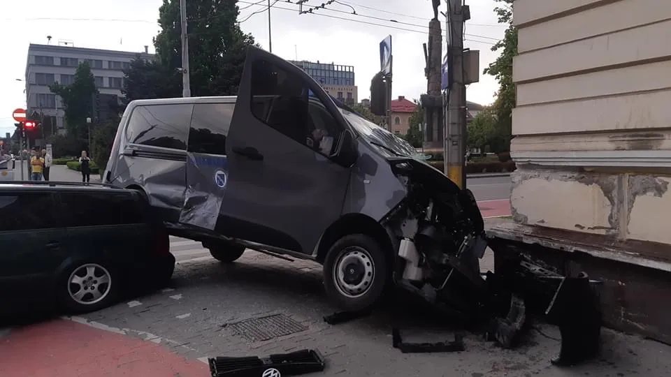 Cluj: Patru oameni duși la spital, după ce o dubă de la Jandarmerie a fost lovită în Piața Avram Iancu - FOTO