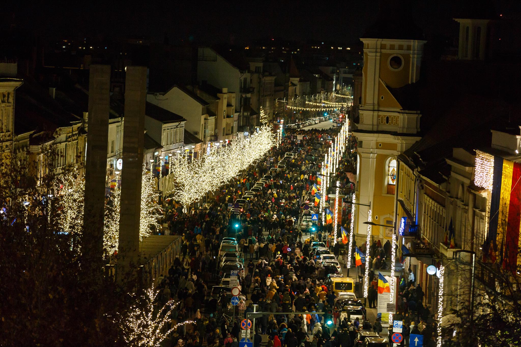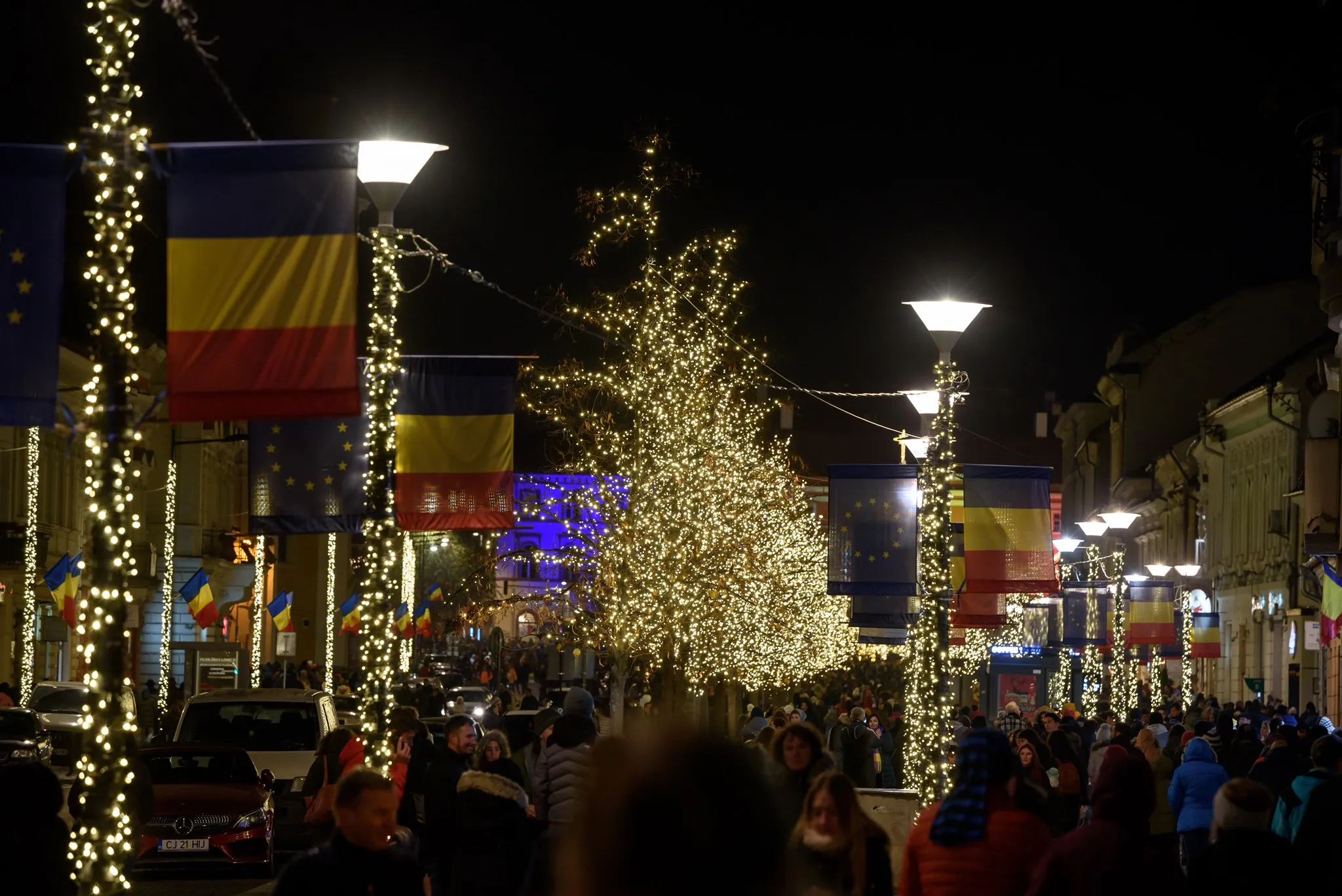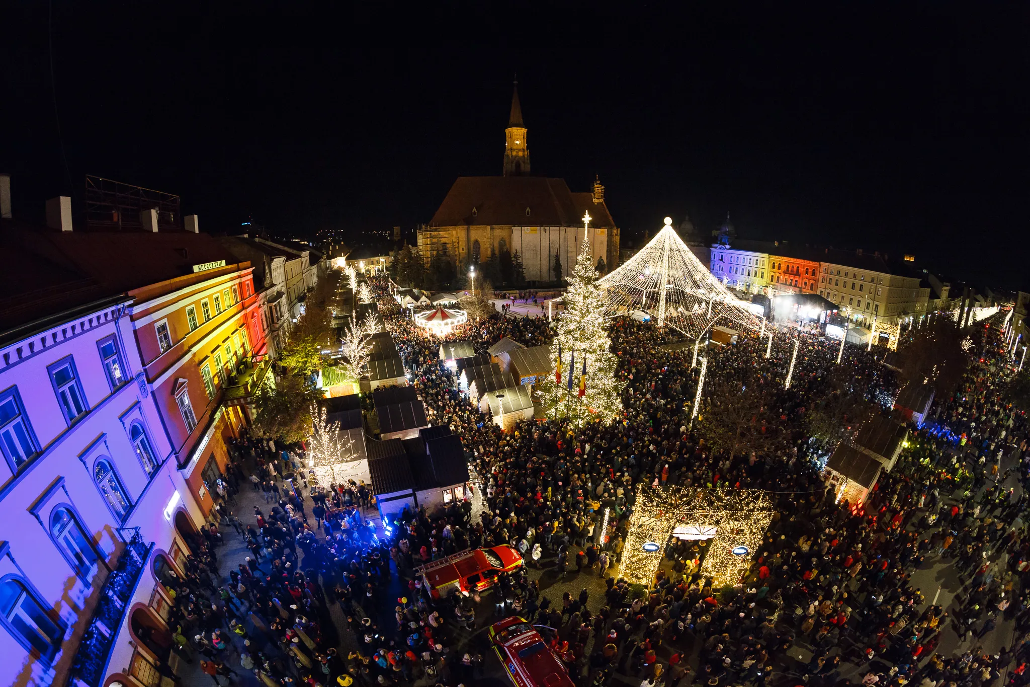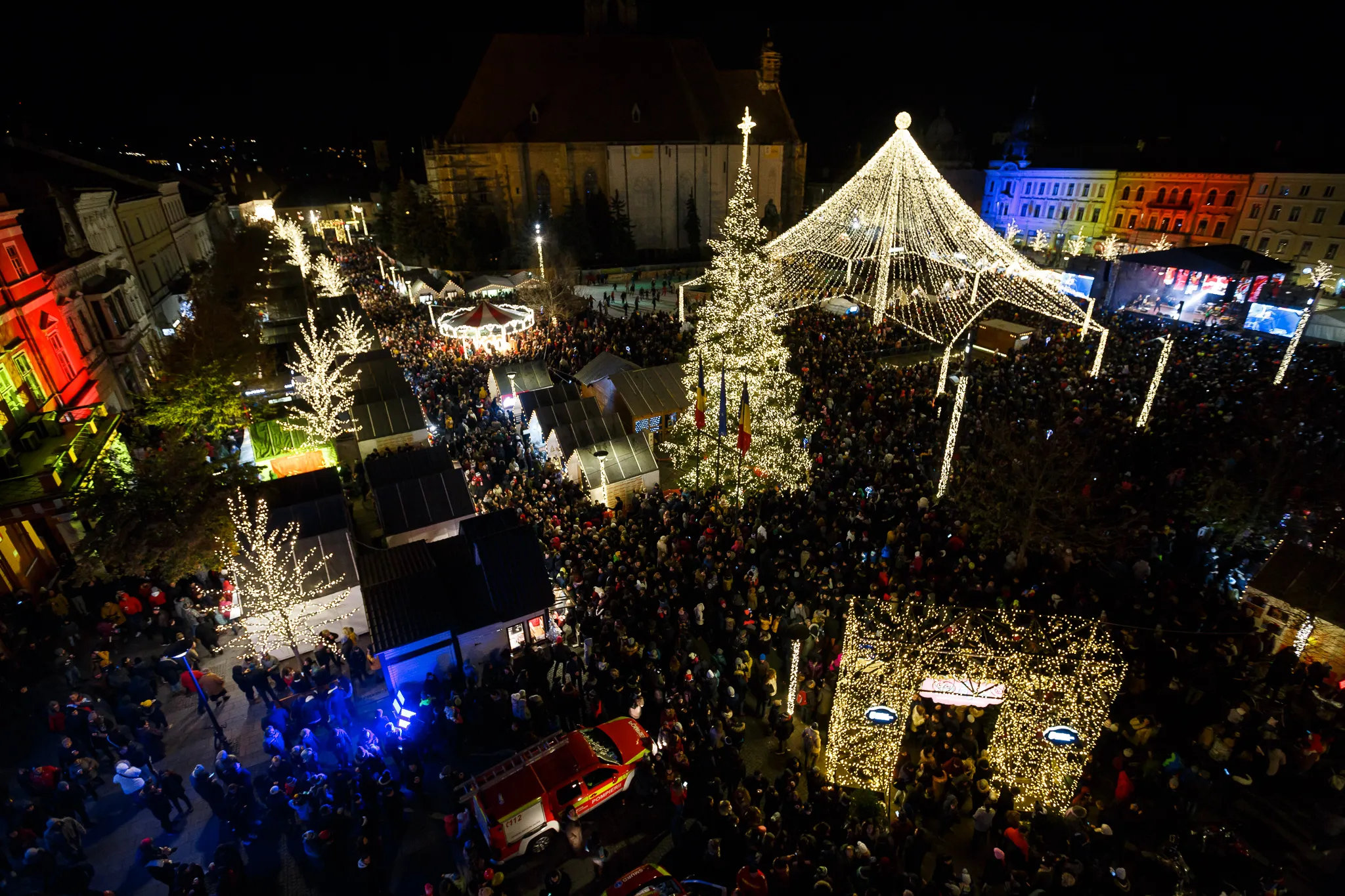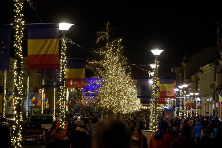 Luminile de Sărbători au fost aprinse la ora 19.00, după care trupele Voltaj și Cargo au concertat pe scena din Piața Unirii într-o atmosferă electrizantă.