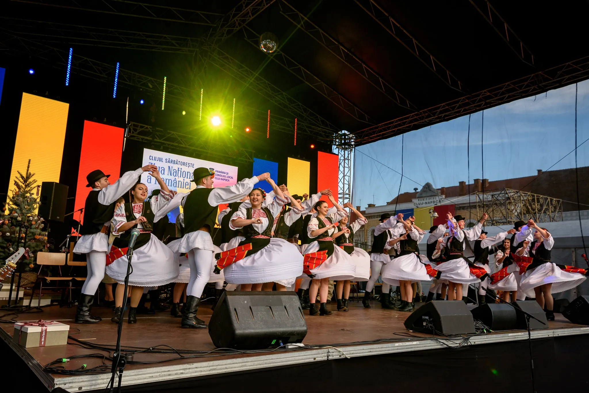 Primăria și Consiliul Local Cluj-Napoca au invitat publicul în a doua parte a zilei în Piața Unirii, epicentrul evenimentelor dedicate sărbătorii de 1 Decembrie. Pe scenă au urcat unii dintre cei mai îndrăgiți interpreți de muzică populară.