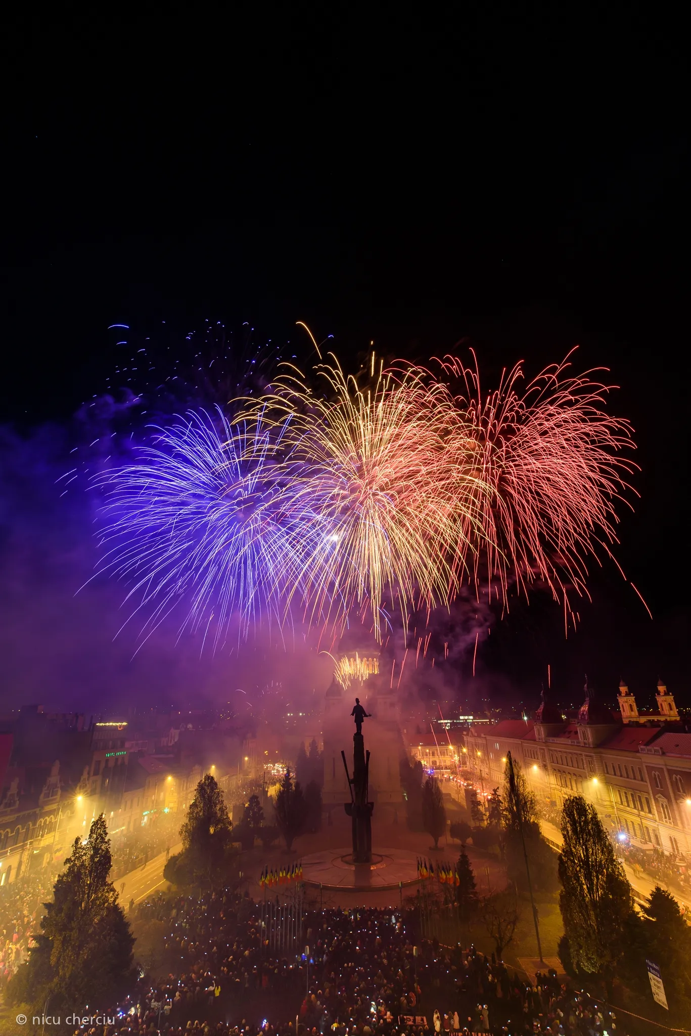 La ora 20, timp de 15 minute, cerul Clujului a fost luminat în cadrul unui spectacol de artificii memorabil, în Piața Avram Iancu. La evenimentele de seară au participat peste 80.000 de persoane.