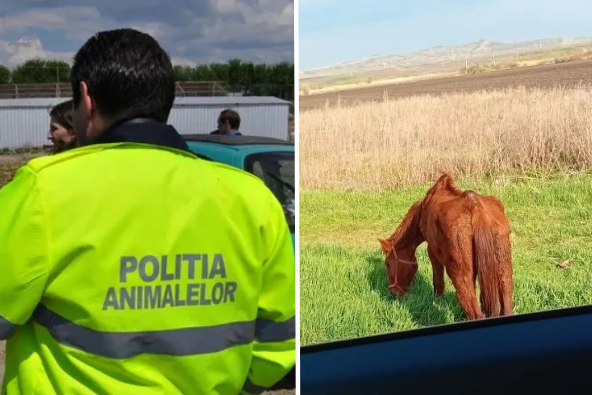 Cluj: Proprietarul calului cumplit de slab, legat de două zile pe un câmp din Jucu, identificat și sancționat de polițiști / Ce au constatat oamenii legii