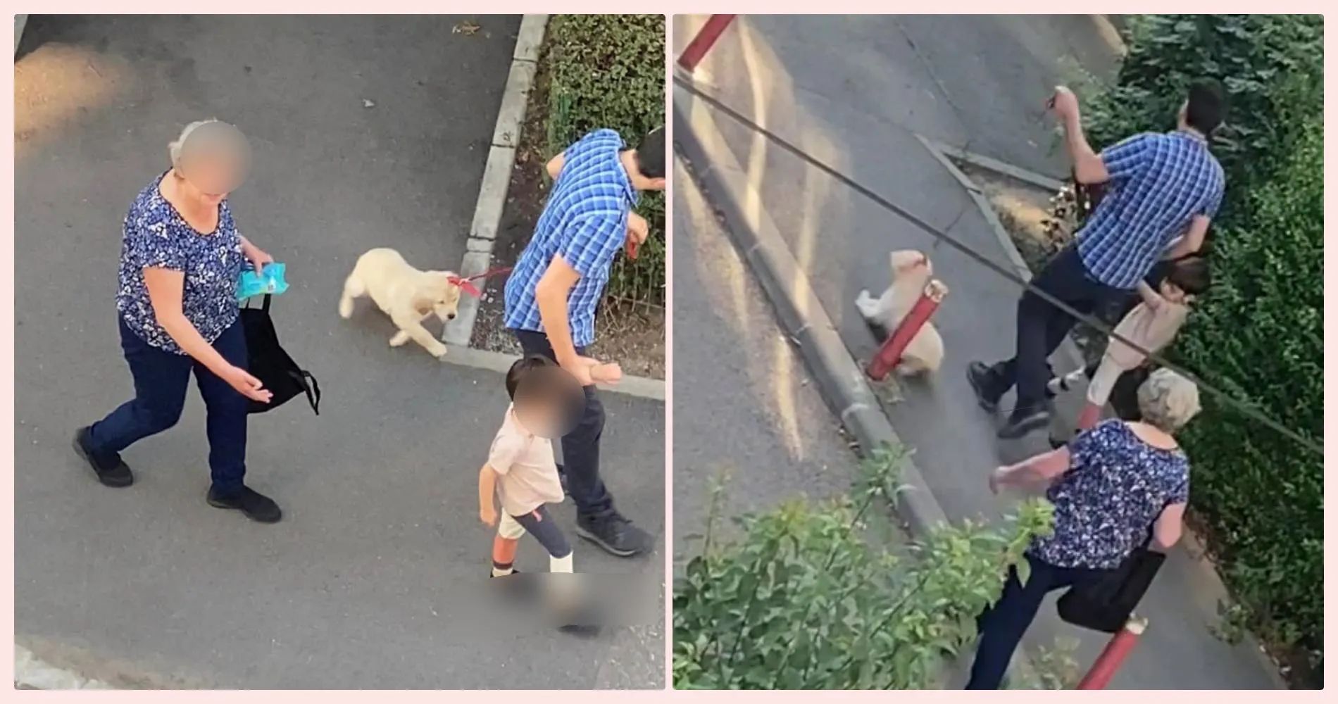 Un pui de câine a fost supus unor chinuri de proprietarul care îl plimba în lesă. Totul s-a petrecut sub ochii copilului.