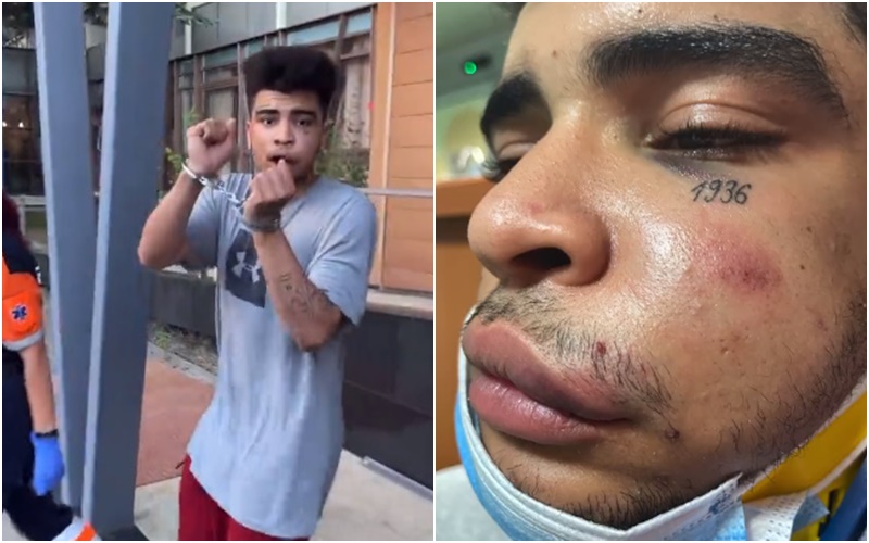 ”Am ieșit de pe arest. Uitați cum m-au umflat gaborii de la secția 4, mai exact șeful, fără niciun motiv. După aia mi-a dat și un mandat de 24 de ore ca să nu mă pot duce să îmi fac medico-megal. Mi-a dat domnița de la UPU (n.red. rapperul a fost dus la spital).