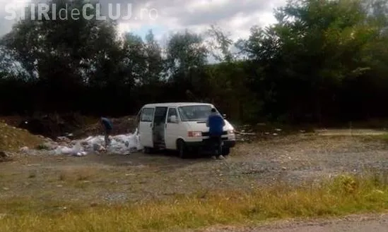 O clujeancă a reușit să surprindă în flagrant doi bărbați care aruncau deșeuri din construcții sub pădure, spre satul Gheorgheni.