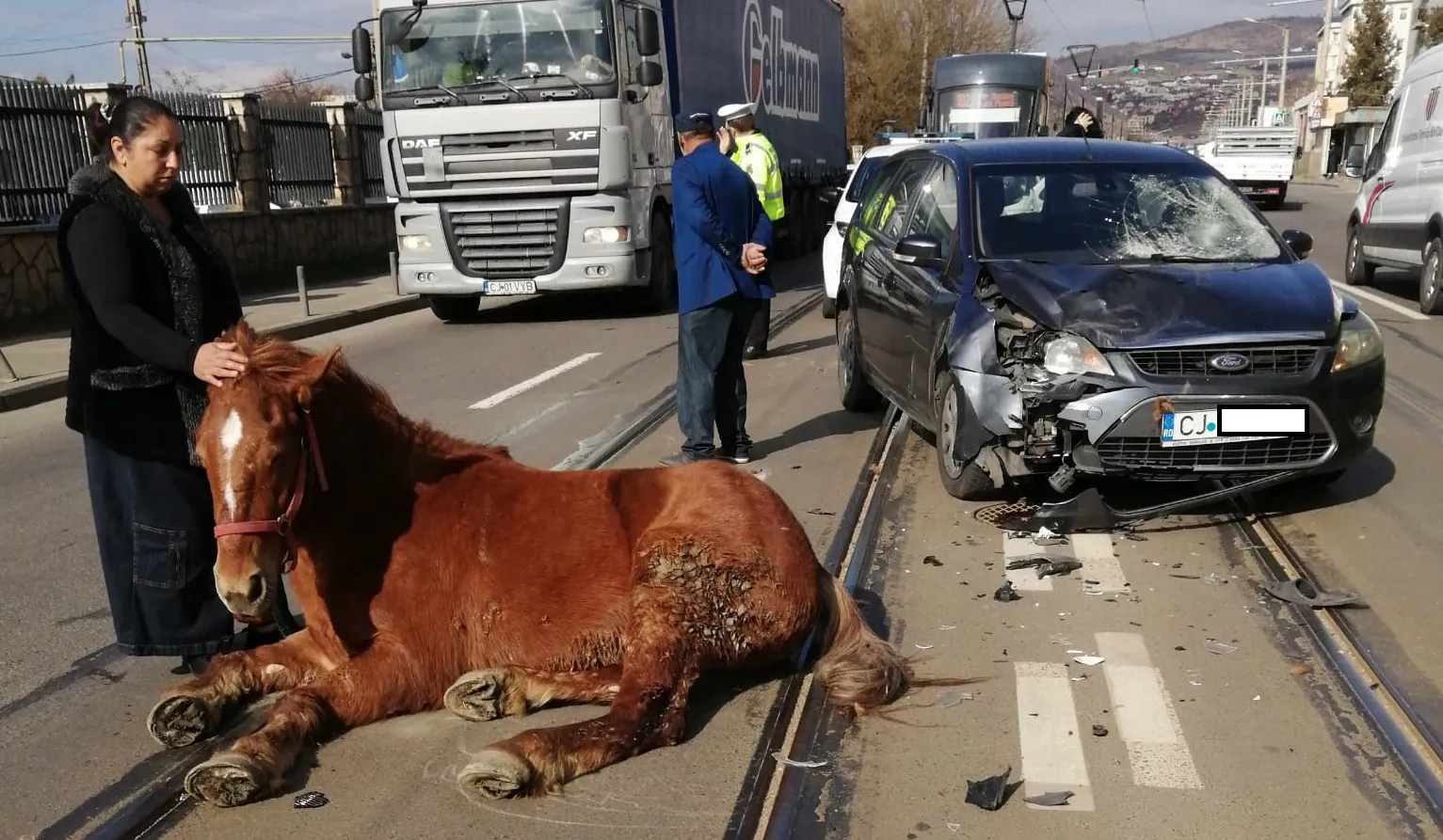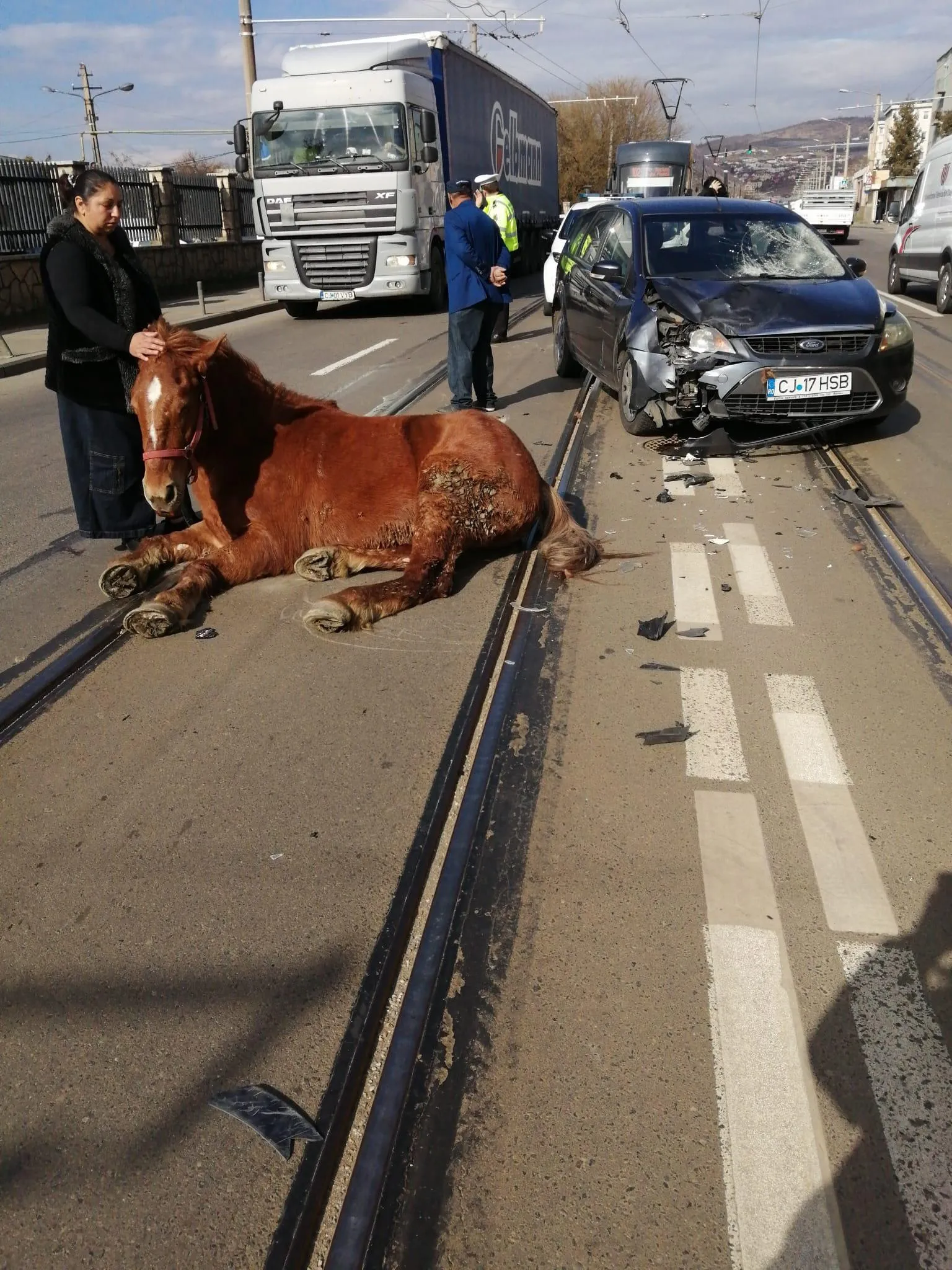 Este vorba despre un cal, pe care proprietarii îl lasă nesupravegheat de romii din zonă. În ultimii ani au fost foarte multe imagini cu cai care aleargă pe Bulevardul Muncii printre mașini, astfel că un accident era inevitabilă.