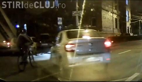 Cluj: Șofer certat cu logica. Era să lovească un biciclist - VIDEO
