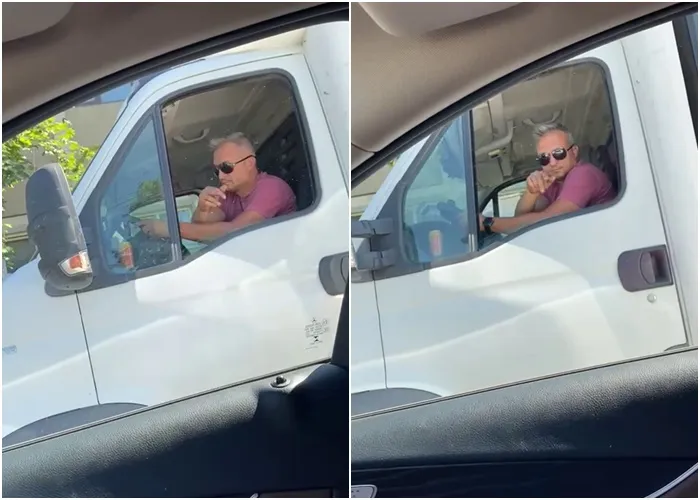 De parcă, circulația nu este suficient de dificilă, șoferul din imagini s-a apucat să își caute dreptatea și să arate semne obscene unui alt conducător auto, care își vedea liniștit de drum.