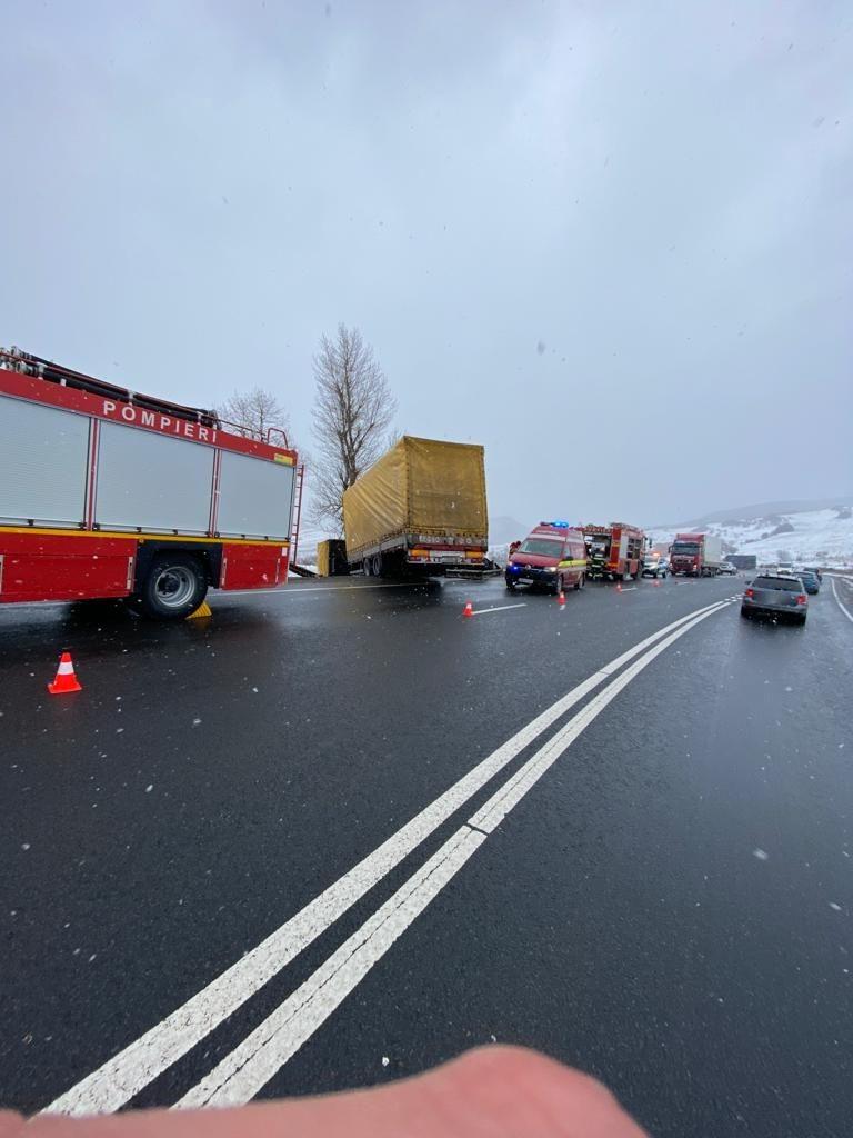 Din cauza condițiilor meteo, luni, în jurul orei 13:00, un TIR a ieșit de pe carosabil și s-a răsturnat, lângă localitatea Dumbrava. Șoferii sunt sfătuiți să se adapteze la condițiile meteo dacă pornesc la drum.