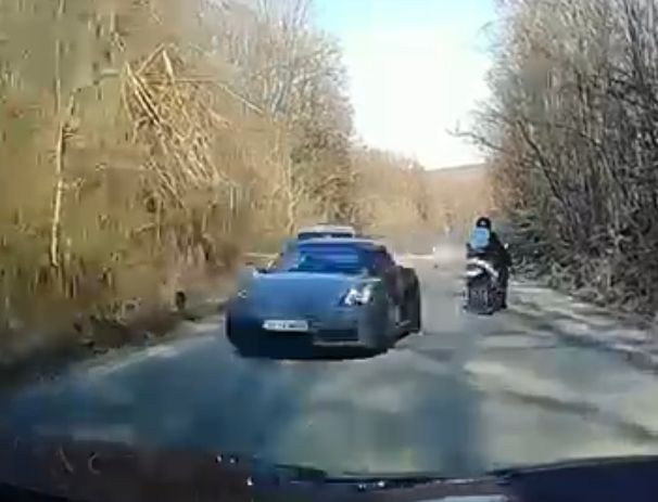 Un motociclist a fost la un pas de a fi spulberat de șoferul unui Porsche, pe un drum din Cluj.