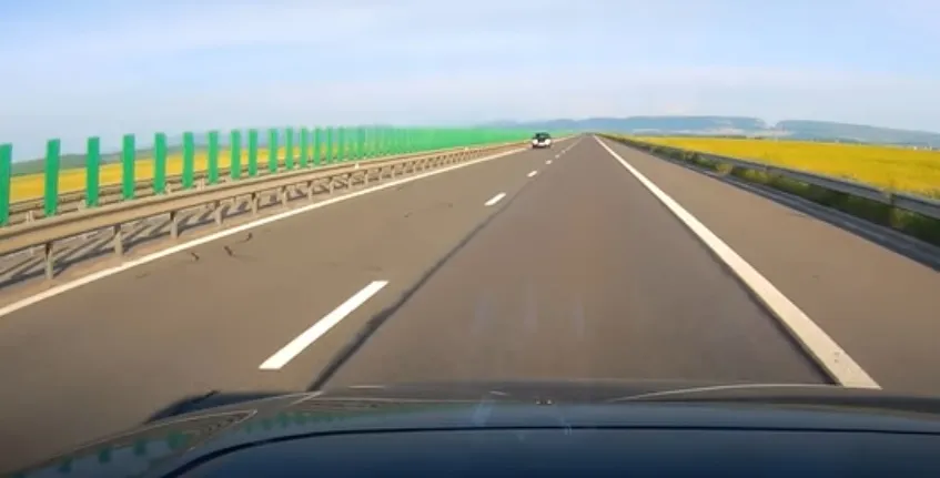 O șoferiță a fost surprinsă în timp ce mergea fără probleme pe contrasens, pe Autostrada A3.