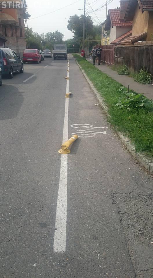 Cluj - Stâlpii de la pistele de biciclete sunt rupți de șoferii care și-au pierdut parcările. BOC îi avertizează pe șoferi - FOTO