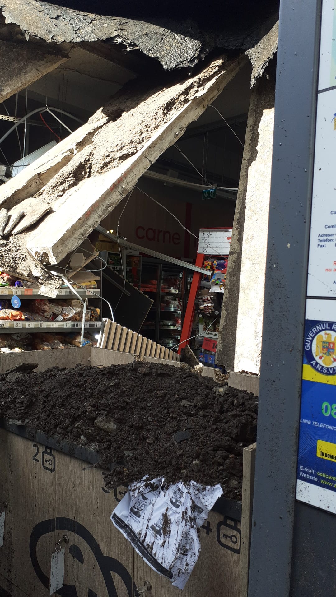 O autospecială și un echipaj SMURD s-au deplasat la fața locului. În apelul de urgență s-a anunțat faptul că o parte a tavanului dintr-un supermarket situat pe strada Aviatorilor s-a prăbușit.