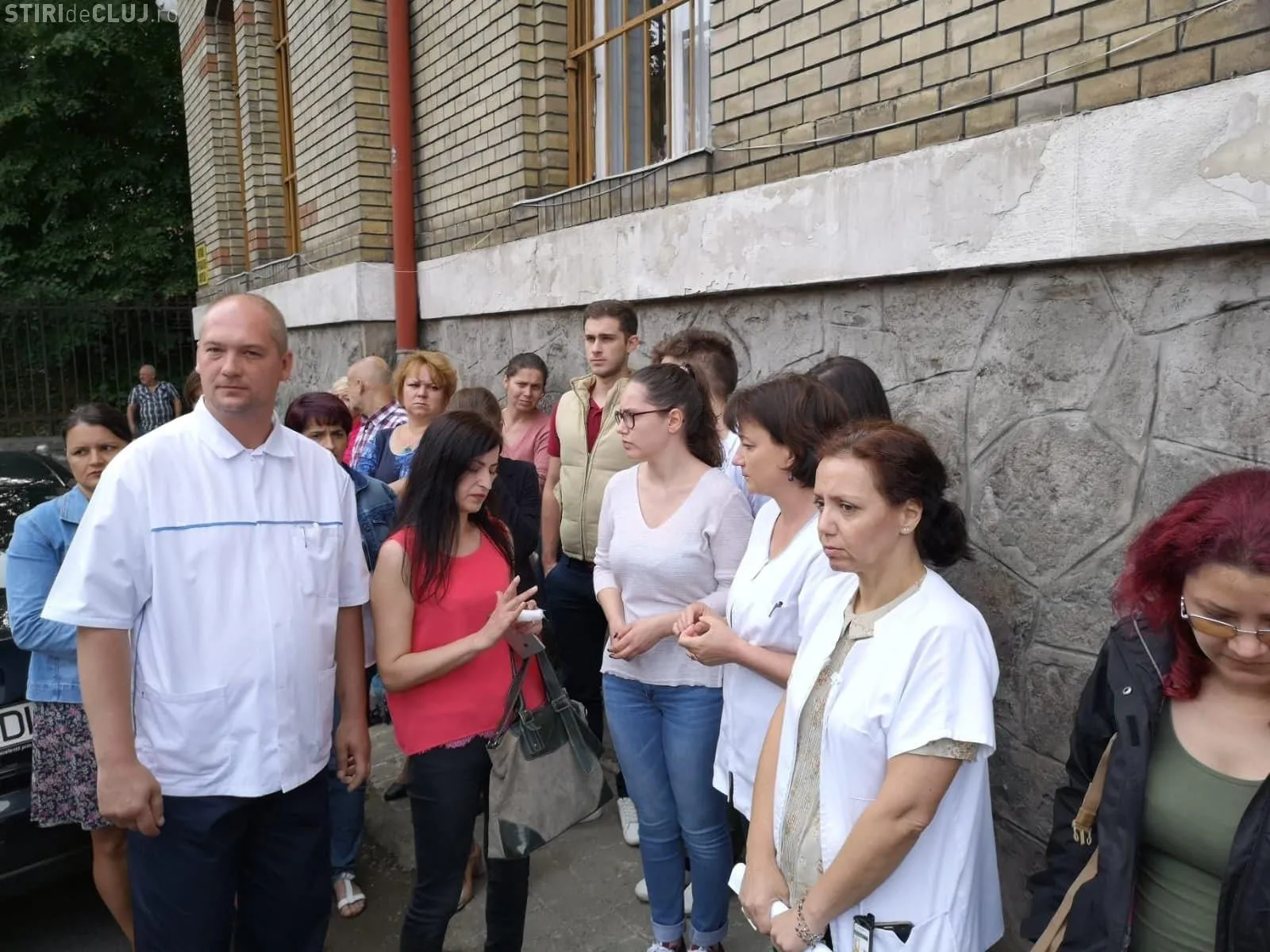Tehnicienii radiologi şi moaşele s-au adunat, luni dimineaţă, în faţa SCJU Cluj-Napoca, după care au avut o întâlnire cu conducerea spitalului.