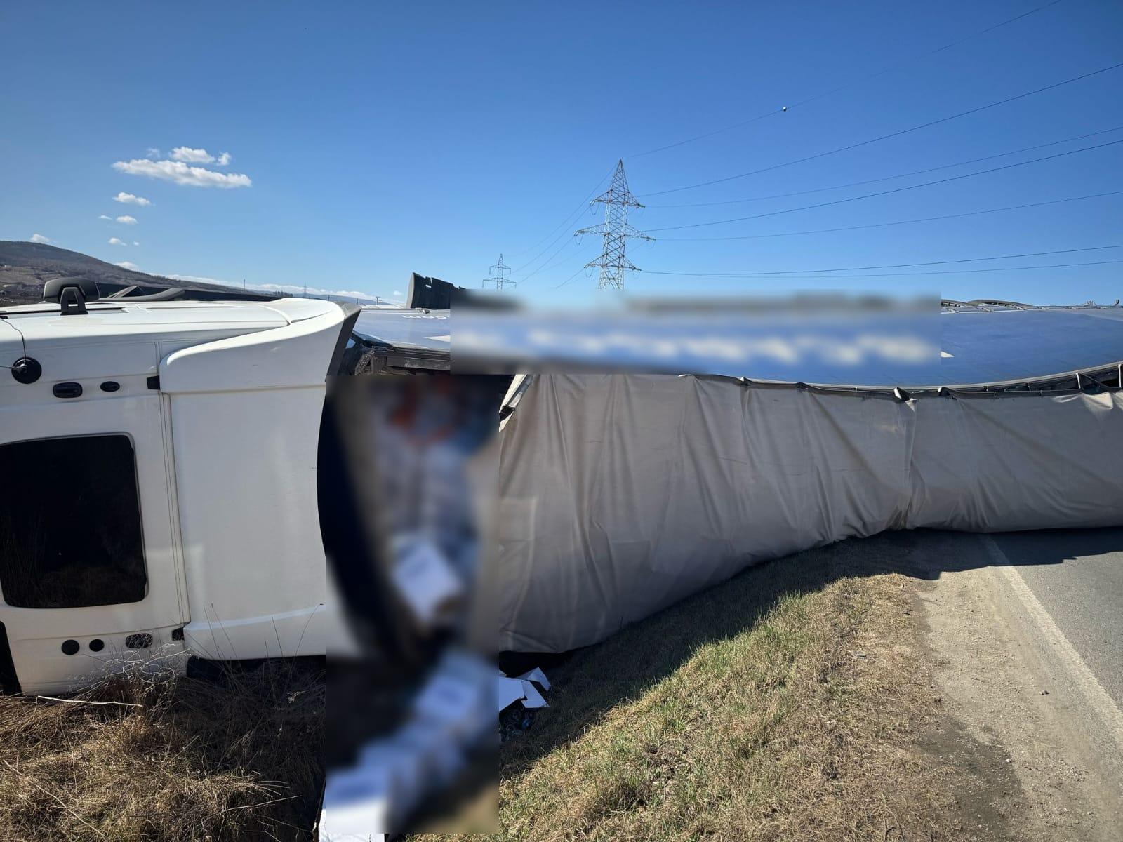 Un șofer s-a răstunat cu TIR-ul într-un șant de pe marginea drumului, forțele ISU fiind solicitate de urgență la fața locului. Din fericire, nu au existat persoane încarcerate, șoferul fiind consultat de paramedici.