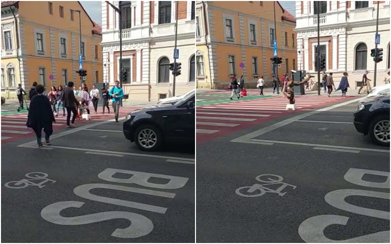 Miercuri, 14 septembrie, la intersecția de la Regionala CFR Cluj un tânăr a făcut spectacol, spre surprinderea tuturor.