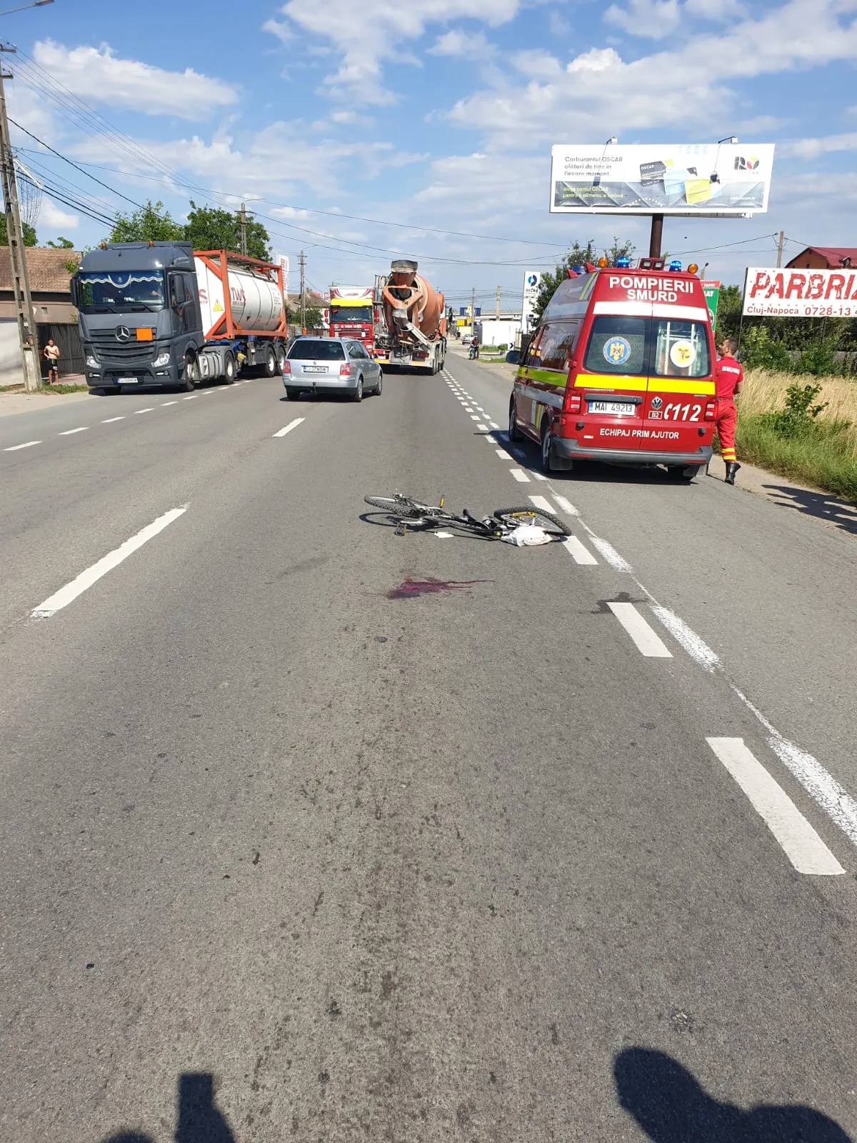 CLUJ: Un biciclist a ajuns în stare gravă la spital după ce a fost lovit de mașină FOTO