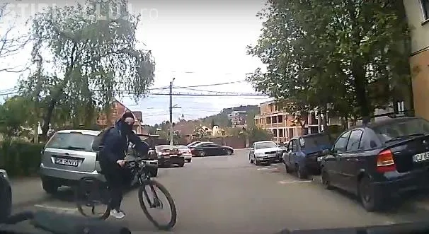 Un șofer a avut o experiență nedorită cu un biciclist care i-a sărit în fața mașinii.