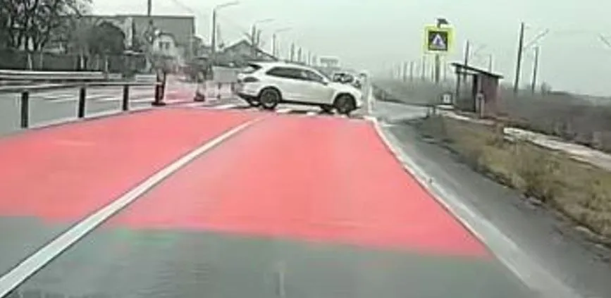 DIn fericire, acesta a fost pe fază și cumva a anticipat mișcarea șoferului imprudent.