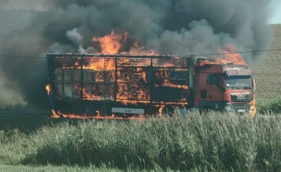 Un camion cu mobila a ars complet în județul Cluj, pe DN1-E60 .